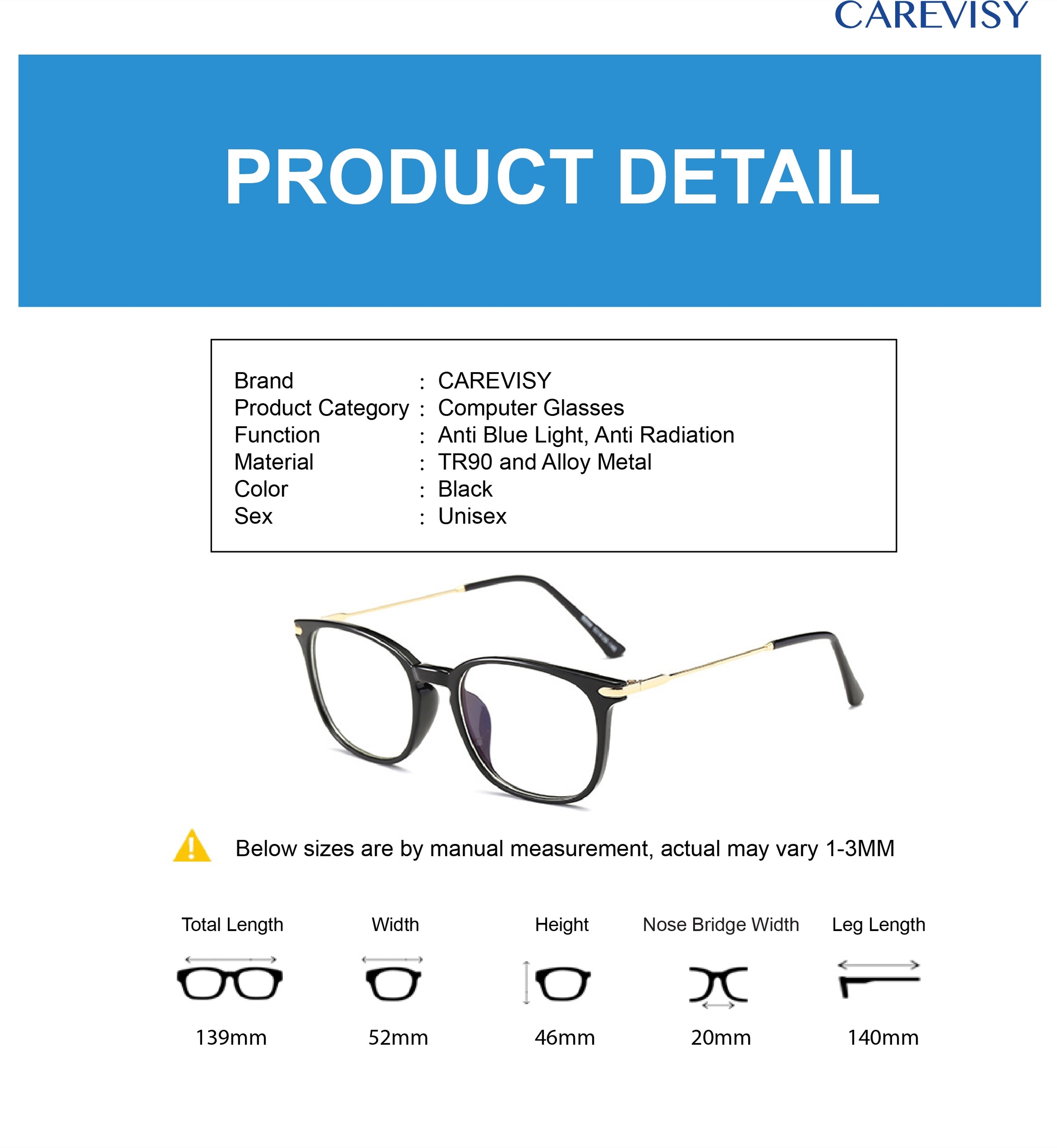 CAREVISY Trendy Anti Blue Light Glasses Computer Glasses Spectacles Anti Radiation Anti Eye Fatigue PC Gaming Eyeglasses for Adults Men Women C6022