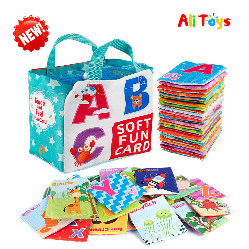 AliToys alphabet flash cards Educational Toys Set 0-12 Months Baby Learning Language Quiet Cloth Book First Kids Soft Books Animal English Learning Card Can be washed