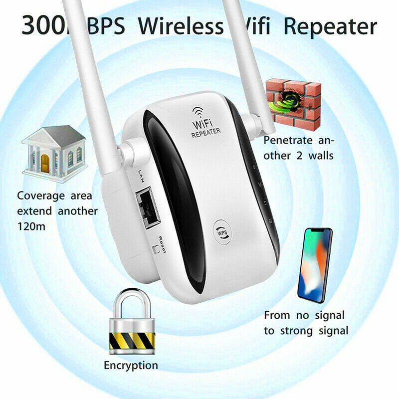WiFi Range Extender Internet Booster Network Router Wireless Signal Repeater KP300T White