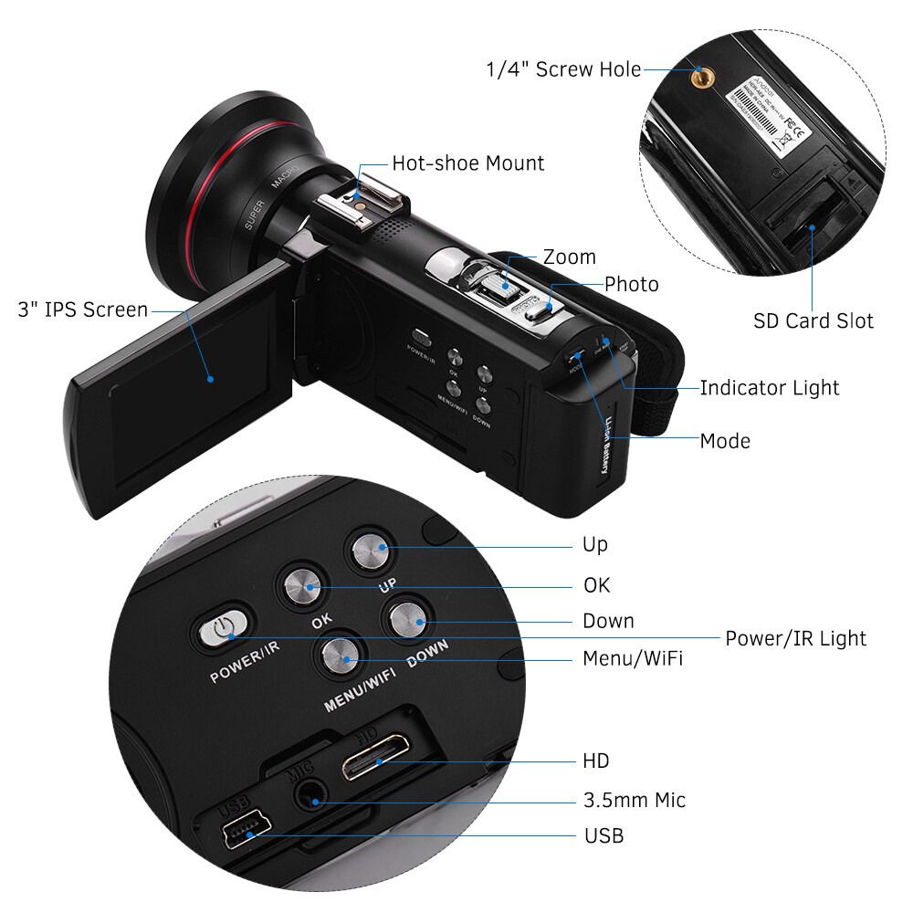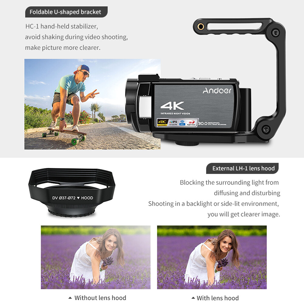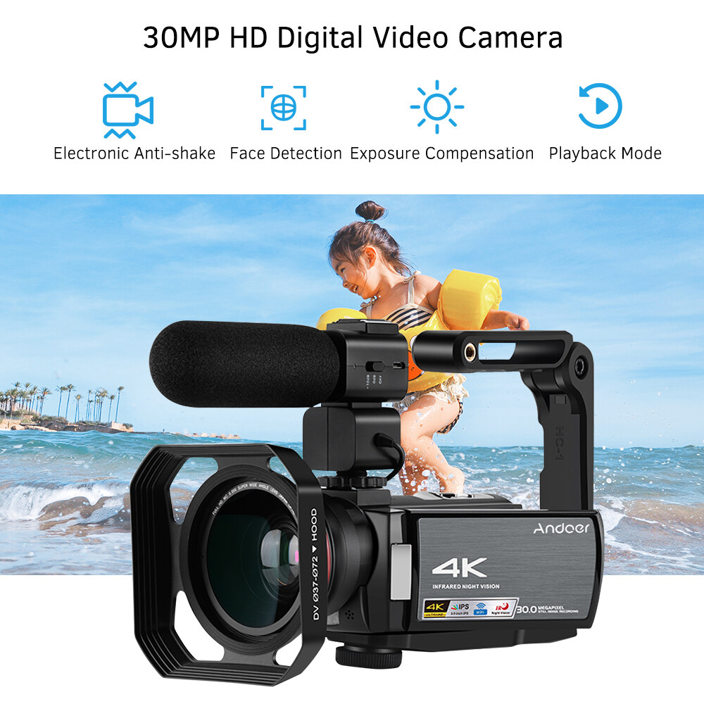 Andoer HDR-AE8 4K WiFi Digital Video Camera Camcorder DV Recorder 30MP 16X Digital Zoom IR Night Vision 3 Inch IPS LCD Touchscreen