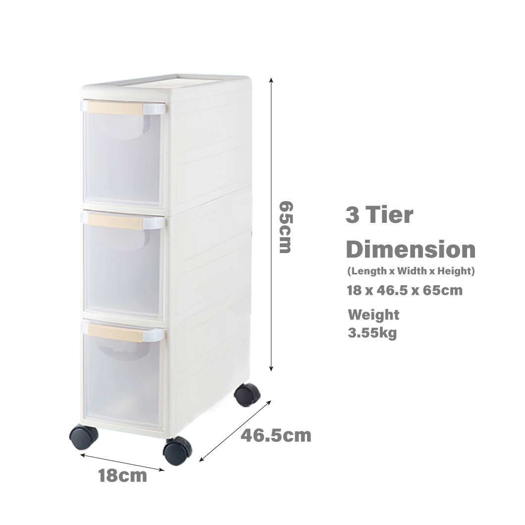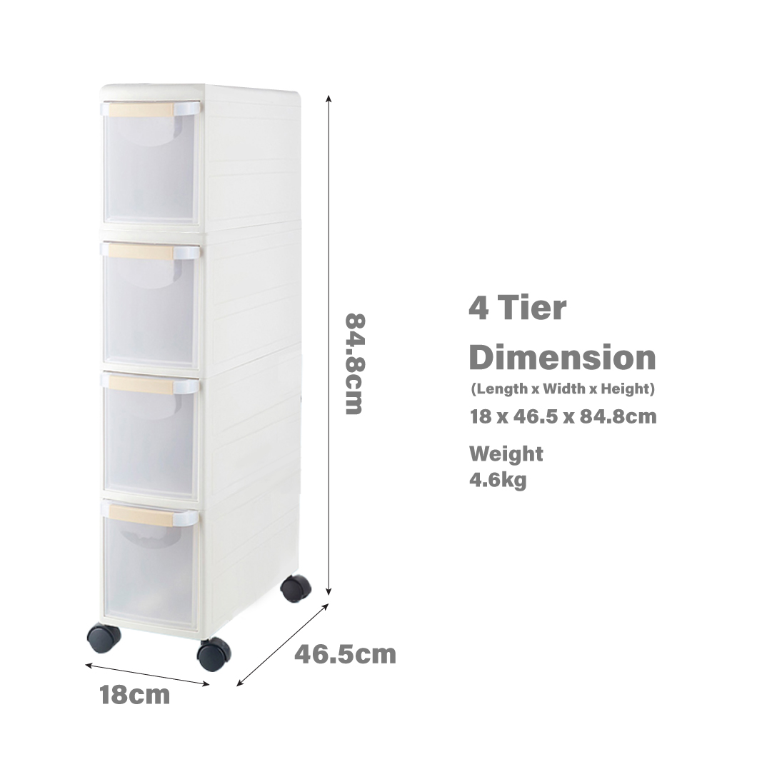 (JIJI.SG) QUESTA Slim Cabinet - 3 Tier - 4 Tier - Organizer - Kitchen - Storage - Drawer - PP Plastic / jt