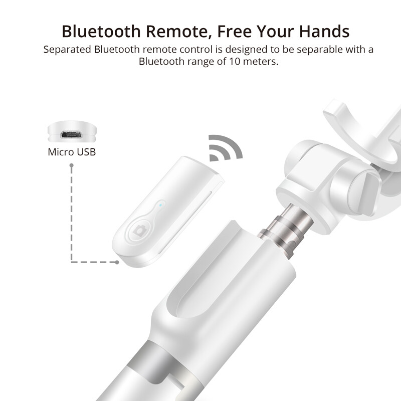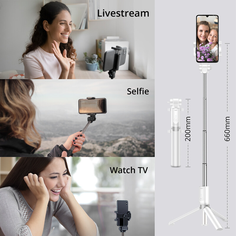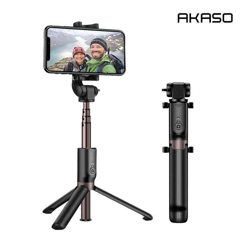 AKASO Selfie Stick Tripod 360°Degree Rotation Bluetooth Remote Control for Phone with 1/4 Mounting Screw for Action Camera