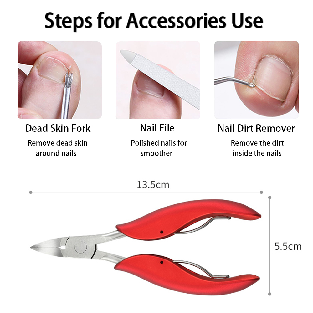 1PCS / 5PCS Nail Clipper for Ingrown or Thick Toenails Cuticle Trimmer Set with Nail File Dead Skin Fork Pedicure Manicure Tools Kit for Fingernails and Toenails Nail Cutter Stainless Steel for Parony