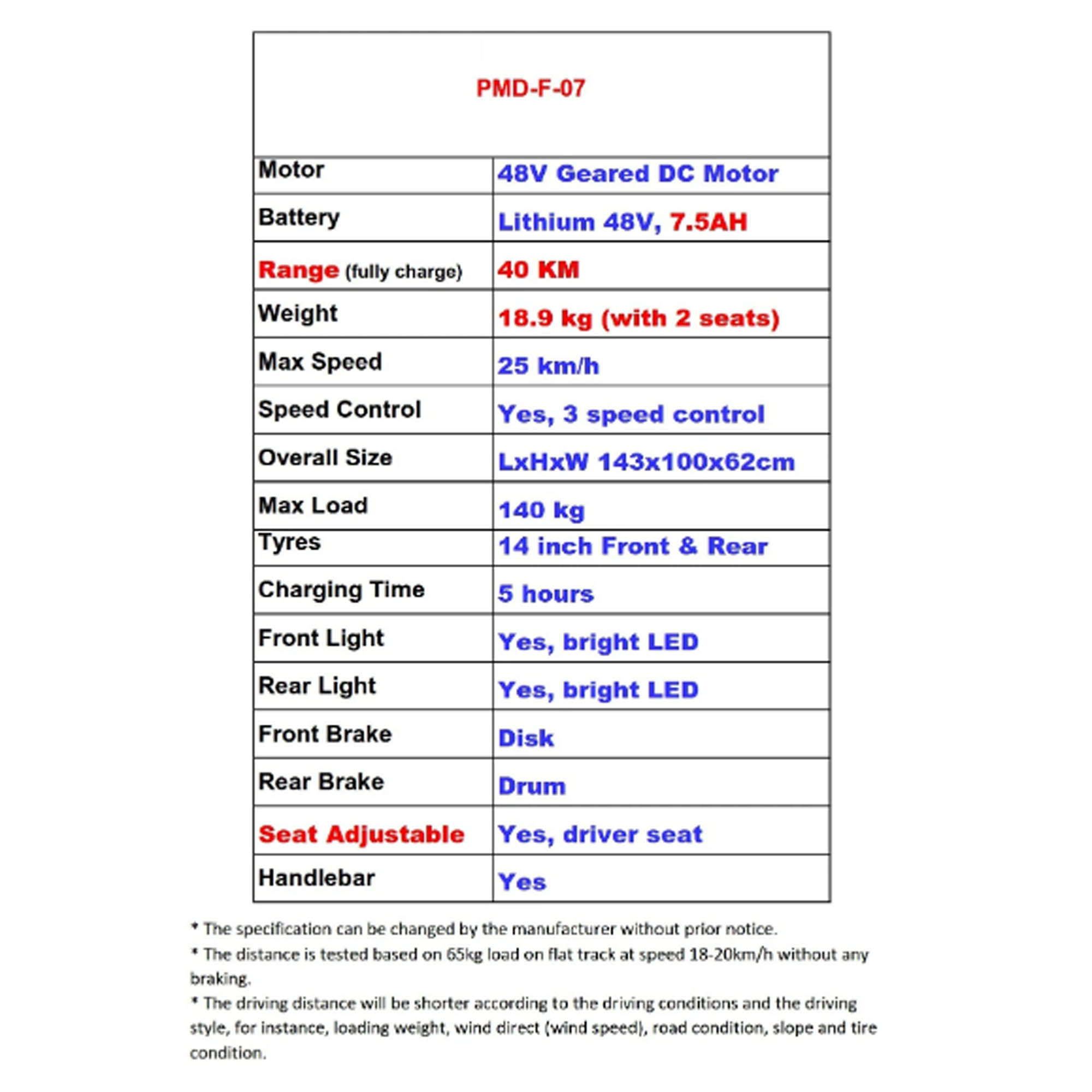 MaximalSG PMD-F-07 UL2272 Certified 14" Seated Electric Scooter LTA Compliant/FIIDO/DYU/TEMPO