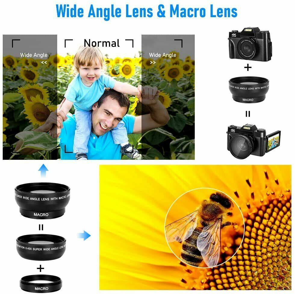 4k 30FPS Digital Camera 48MP WI-FI Camera vlog recording for YouTube 30FPS with WI-FI 16X Free Gift wide-angle lens Vlogging Camera