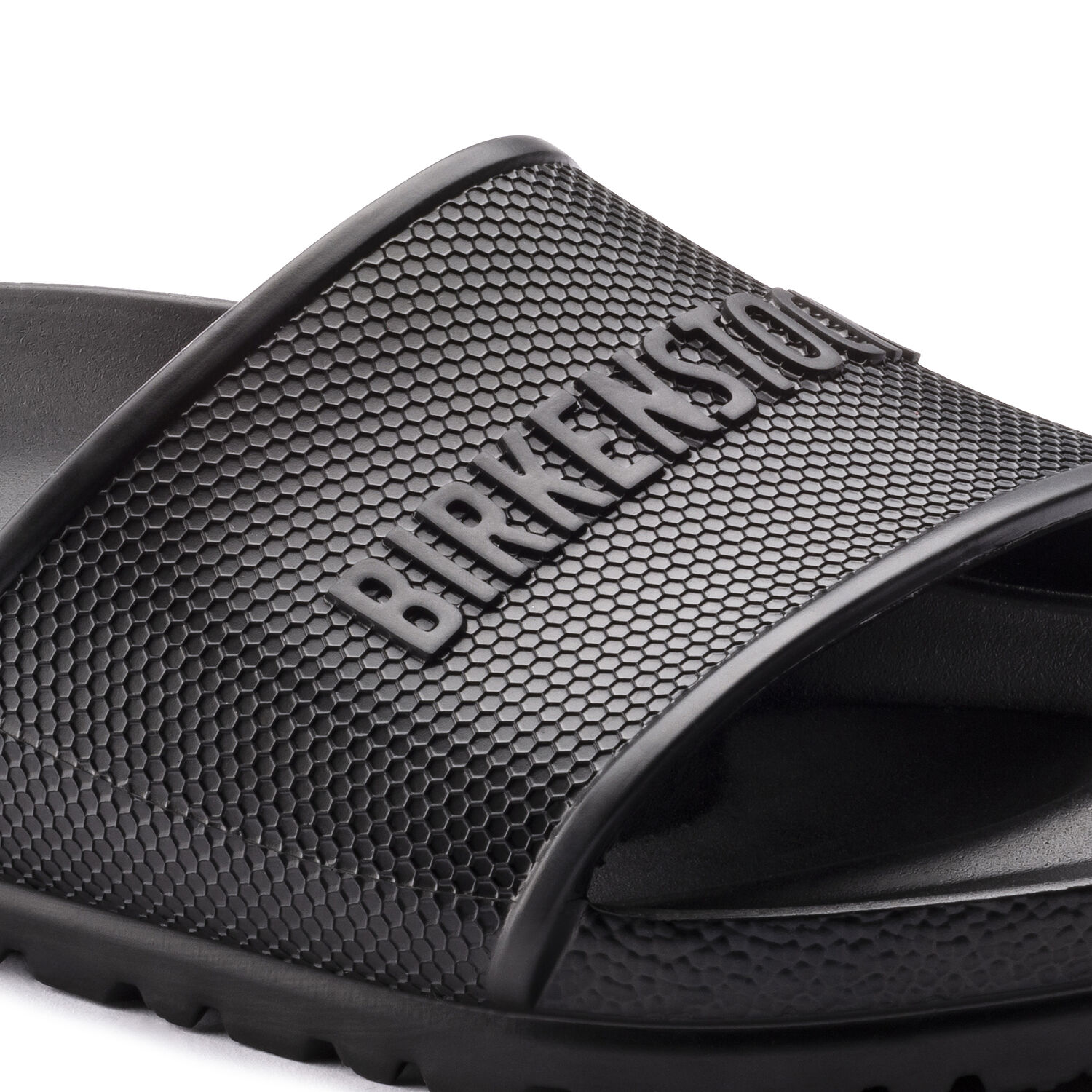The BIRKENSTOCK Barbados is a sporty mule with a hexagon pattern and logo lettering. It’s perfect for anyone who is looking in particular for function and comfort. Modeled on the cork sandal, this sandal is made from especially light and flexible EVA. This high-quality, odor-neutral synthetic material which has been tested for harmful substances is shock-absorbent, waterproof, and skin-friendly. It’s therefore perfect for wearing at the beach, in the garden, or in wellness and spa areas.