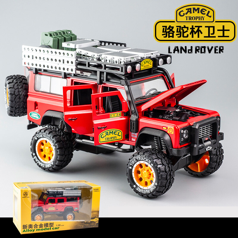 LEO 1:28 Land Rover Defender Camel trophy alloy model car big car monster truck toy for kids boys