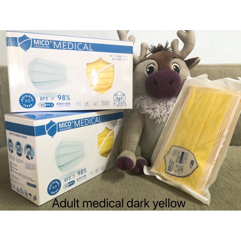Product detail:- 3ply - 50pcs in a box - 5 packets of 10 mask- Efficient protective meltblown cloth- Comfortable non-woven fabric- Ultrasonic seamless technology- Strong plasticity nose strip- With MICO stamp on mask to prove authenticity - This product complies with the BFE and PFE standards specified by YY/T Surgical mask.