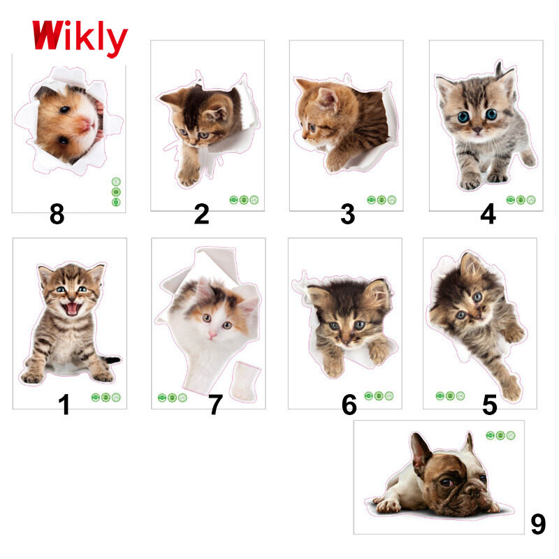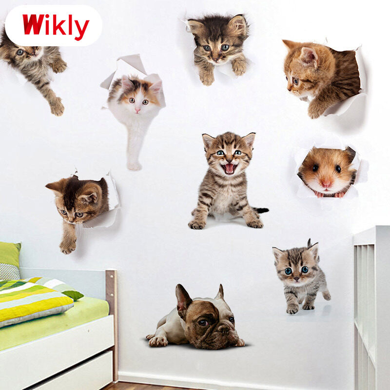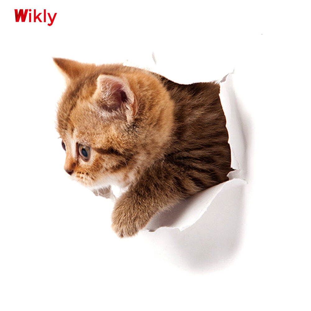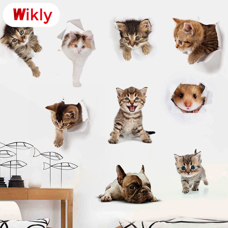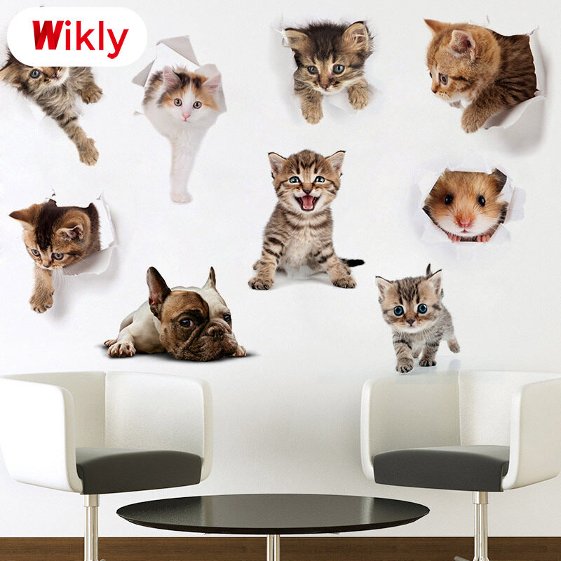 Wikly 3D Cat Dog Wall Sticker Bathroom Bedroom Animal Decals Toilet Stickers Home Decoration Art Poster