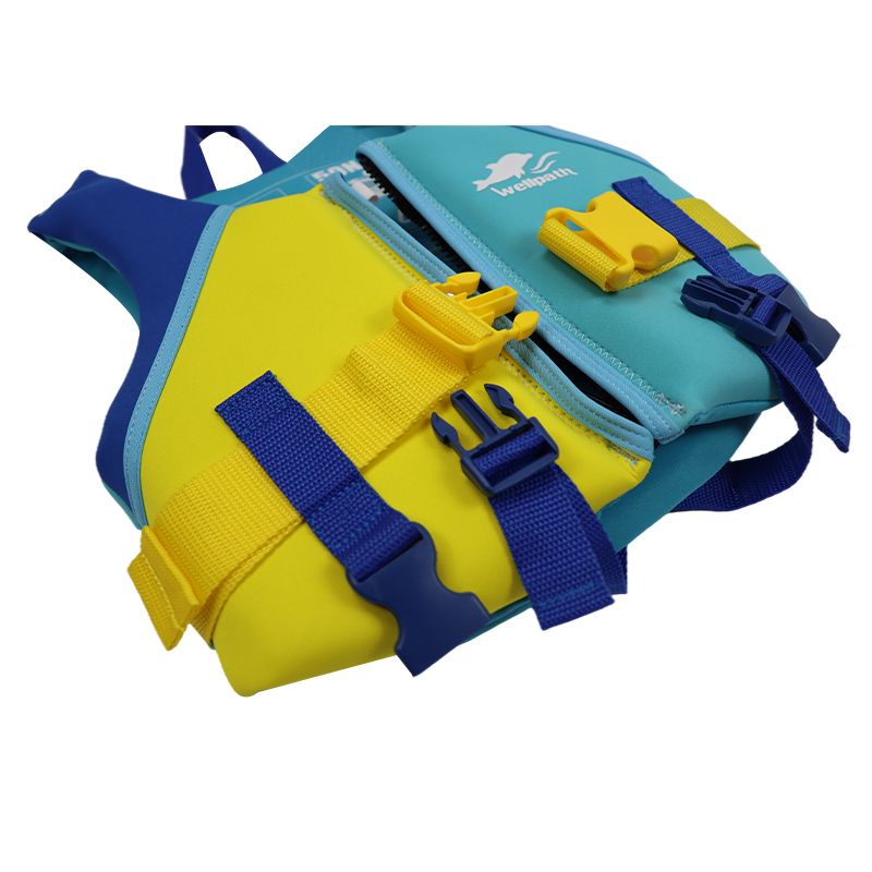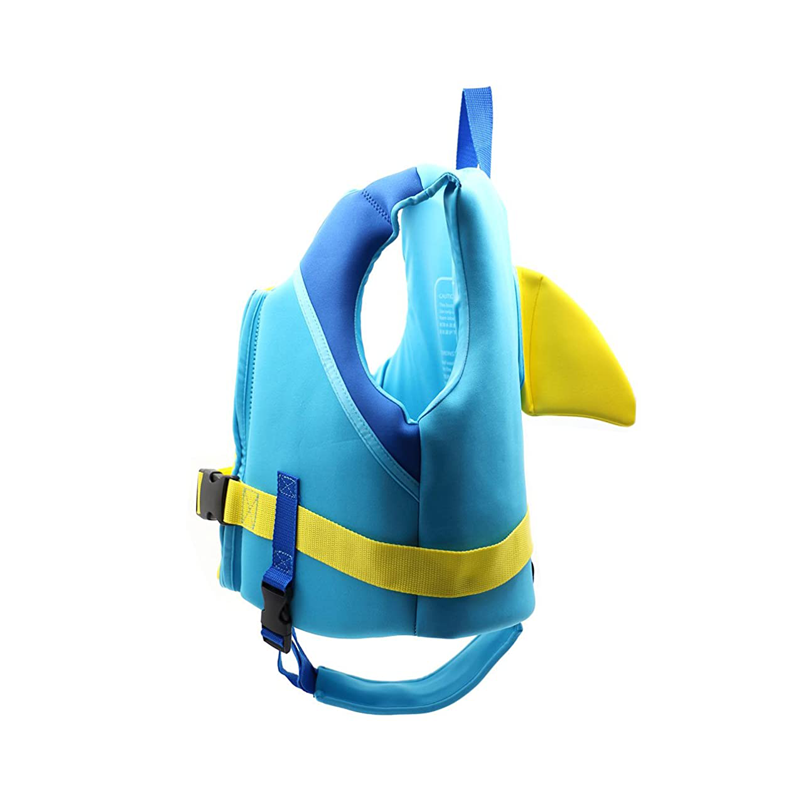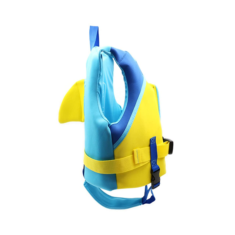 The flotation vest features EPE inner core for optimal buoyancy while minimizing bulk, as well as a durable Neoprene shell that will hold up to years of outdoor use.Features: Hard Neoprene outer shell and 100% innovative eco-friendly EPE inner core. Light weight and dependable buoyancy. Adjusted waist straps to fit your children's size and make them comfortable to the fullest. Quick release buckles for easy on-and-off. Different size and color for your choice.Specifications: Outer Material: Neoprene Interior Material:100% innovative eco-friendly EPE Color: Bule and yellowSize: S - Length 37cm; Bust 78cm; Hem width 74cm; Buoyancy: 20-25kg; Recommend age: 3-5 years old M - Length 39cm; Bust 82cm; Hem width 78cm; Buoyancy: 25-30kg; Recommend age: 5-7 years old L - Length 41cm; Bust 86cm; Hem width 82cm;Buoyancy: 30-35kg; Recommend age: 7-9 years oldWARNING:The swim vest is used to learn swimming and adult supervision is required at all times.Package List: 1 * Kids float vest