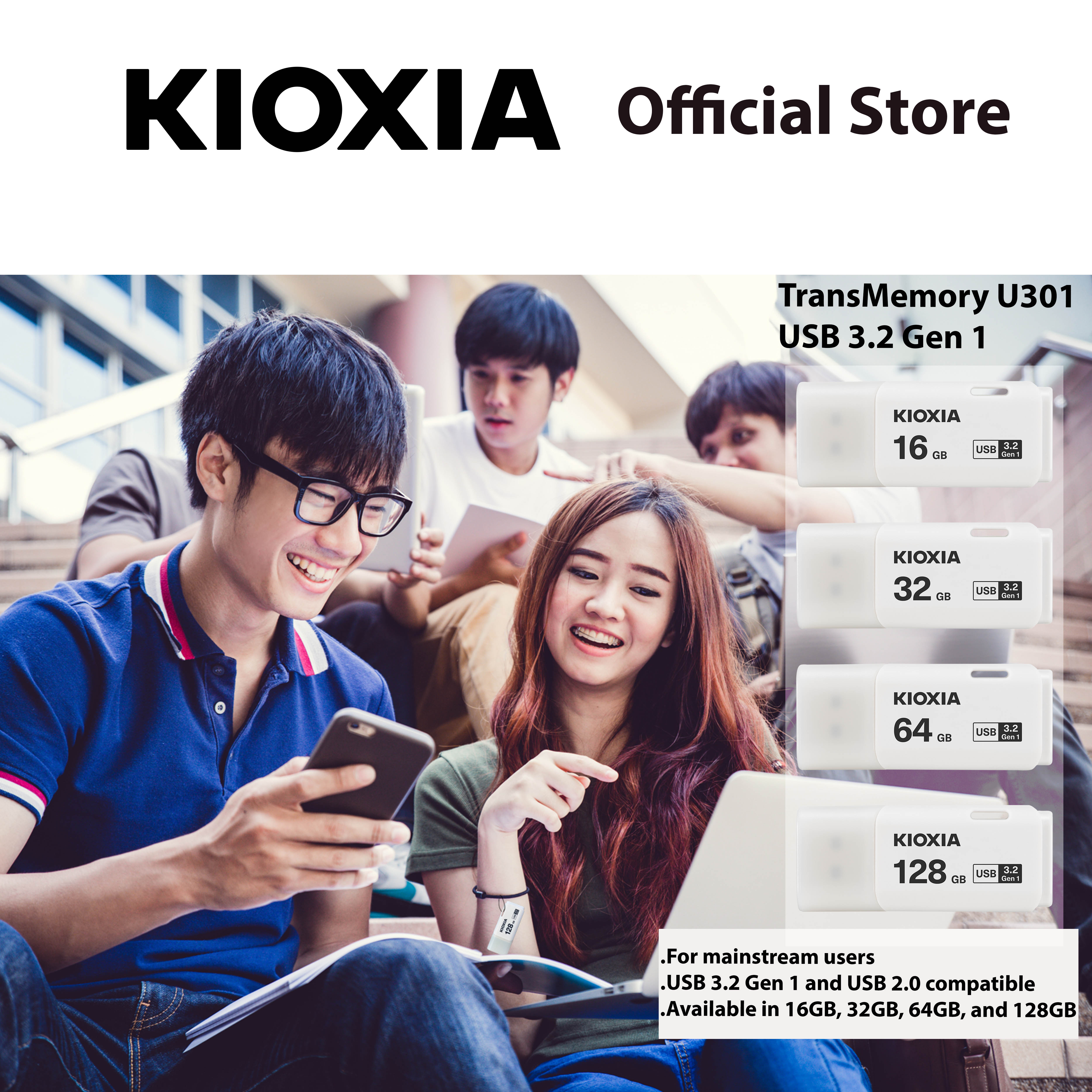 KIOXIA TransMemory U301 USB flash drives make it simple to store your media – with a design that’s small in size, but big on storage, and features USB 3.2 Gen 1 technology. With a range of capacities up to 128GB, you can organize more of your documents and media across various devices.