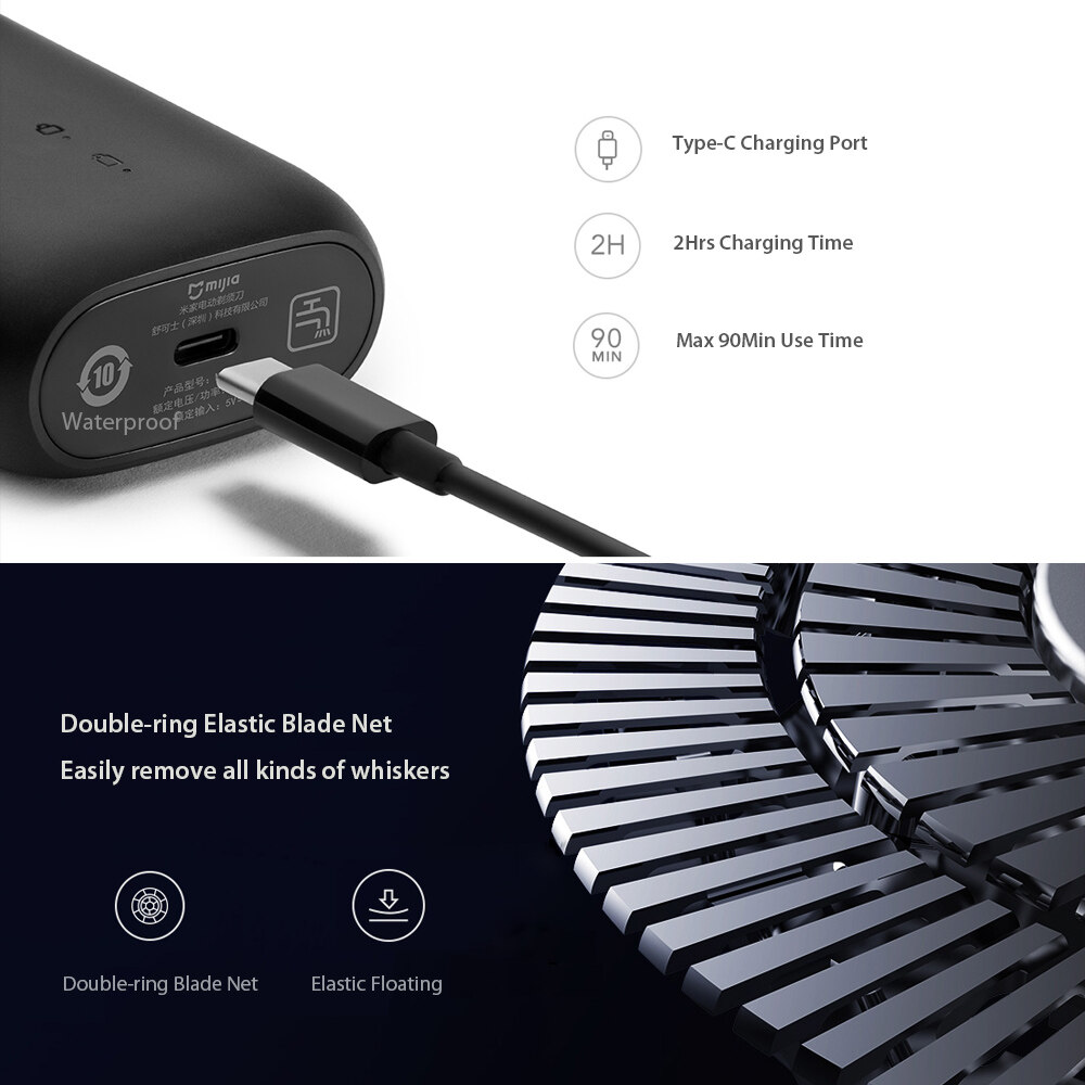 Specifications: Brand: Xiaomi Mijia Product: Electric Shaver Model: MSX201 Color: Black Operation Type: Electric Use Condition: Dry,Wet Cleaning: Washable Input: 5V-1A Rated Power: 2W Waterproof Grade: IPX7 Charging Mode: Type-C Charging Charging Time: About 2 Hours for Fully Charge Endurance: About 90 Minutes Product weight: 85g/3.00oz Package weight: 200g/7.05oz Product size: Approx. 8.7 x 5.6 x 3.0 cm / 3.43 x 2.20 x 1.18 inches Package size: Approx. 12.00 x 8.00 x 4.00 cm / 4.72 x 3.15 x 3.15 inches