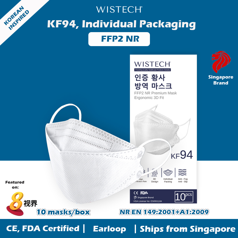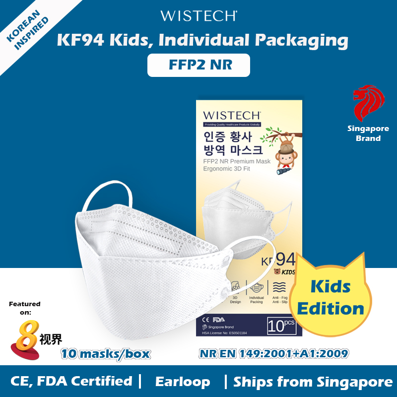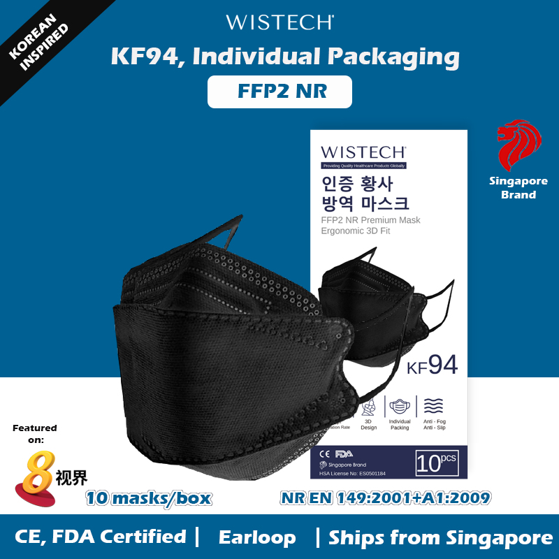 [OFFICIAL STORE] GET ADDITIONAL % OFF KIDS/ADULT (White/Black) Wistech Individual Sealed KF94. 10 pieces, FDA CE Approved, Wistech Singapore