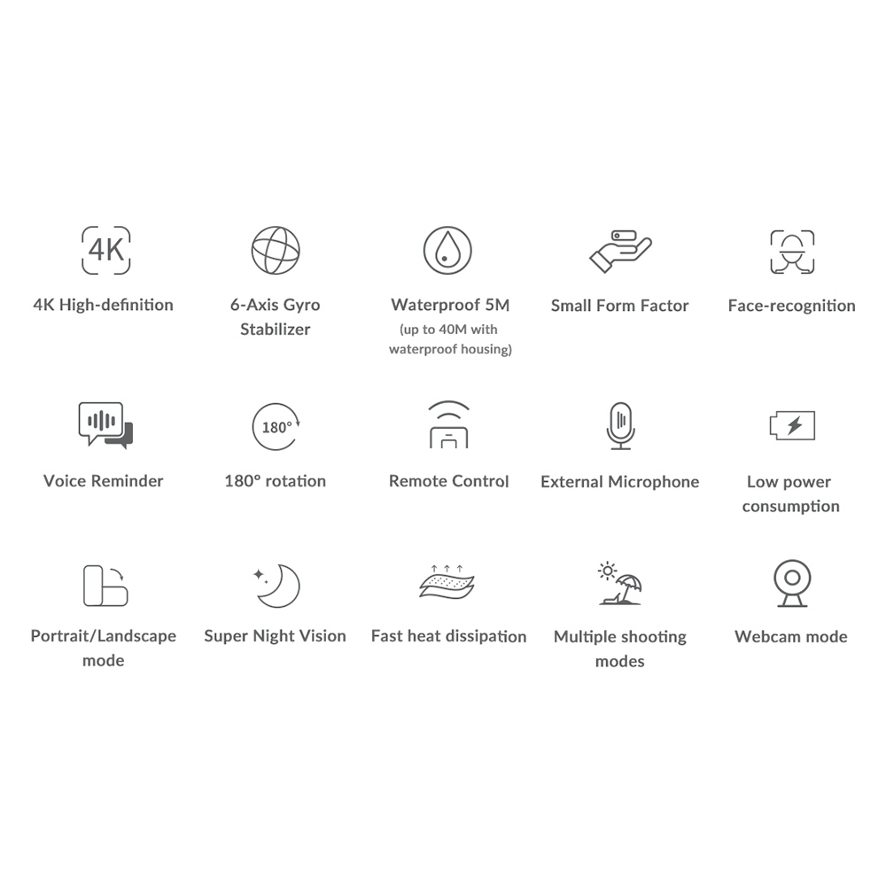 • Mini and lightweight camera body: It is 25% lighter and 23% smaller compared to a regular action cam, making it easy to carry around anytime anywhere