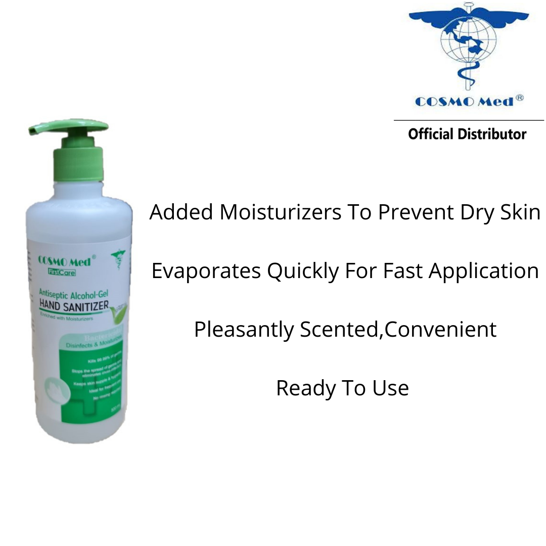 Cosmo Med Hand Sanitizer Gel 70% Alcohol 0.5% Chlorhexidine With Moisturizer 500ml (With Pump)