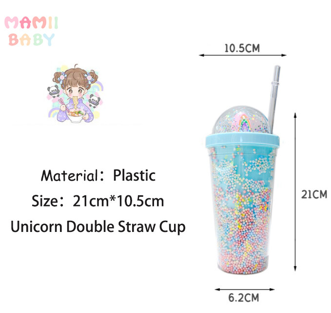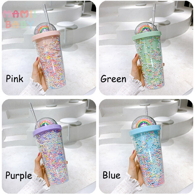 Rainbow Cup Double Layer Plastic Coffee Mug Tumbler with Straw Water Bottle Reusable 550ml