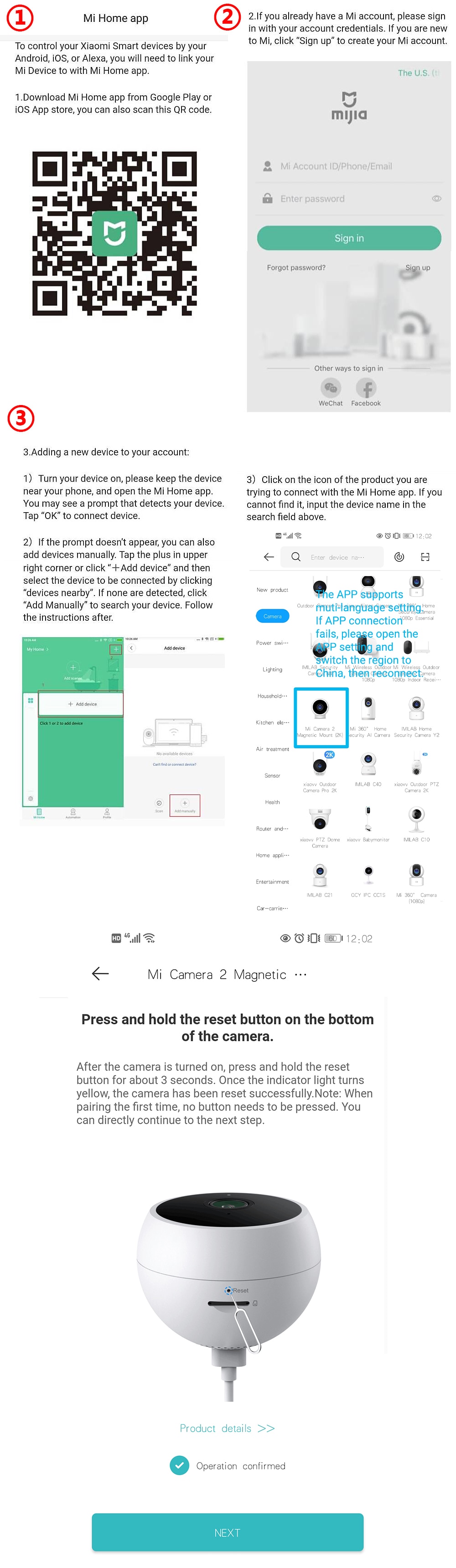 Parameters:Xiaomi Smart Security Camera Standard Version 2KModel: MJSXJ03HLColor: WhiteRated input: 5V 1AResolution: 2304 x 1296P (3MP)Lens angle: 125°Wi-Fi connection: Storage method: TF card (max. 32G)APP: Mi HomeSystem: Voltage: 220V (CN Plug with 2 pins)4.Note:*Long press the reset button, the reset is successful if you hear the voice prompt. (Resetting the camera will not delete the content in the TF card.)Product warranty is only for customers in China