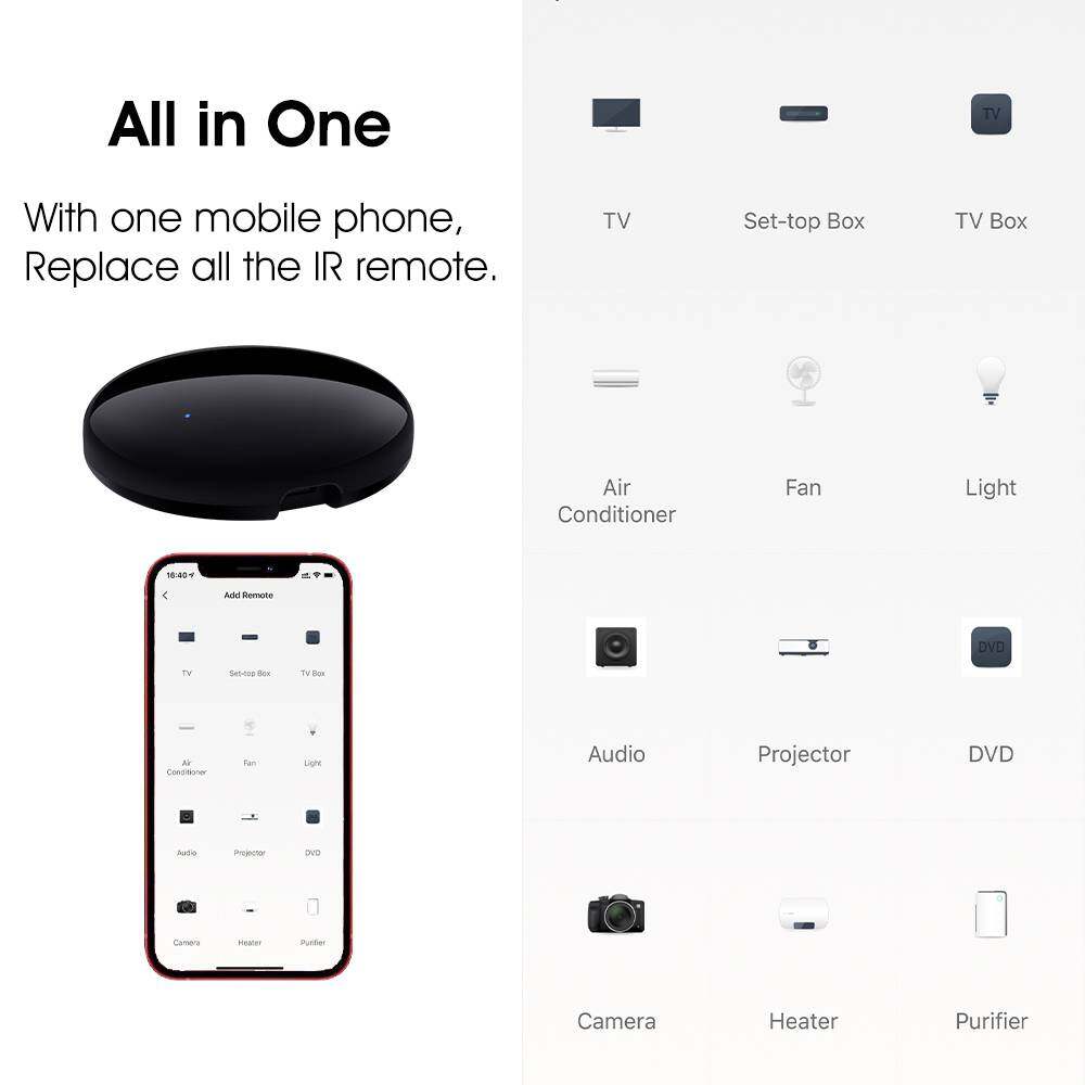 1. SMART IR can only work with 38KHZ IR, please make sure your device is IR control or RF before purchasing. (Best way to distinguish IR and RF: Put hand in front of original remote,if it doesn't work ,its IR control . If it still works ,its RF control)
