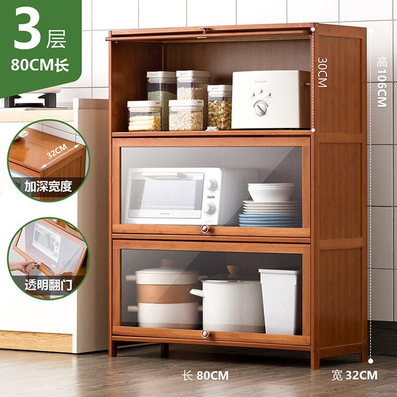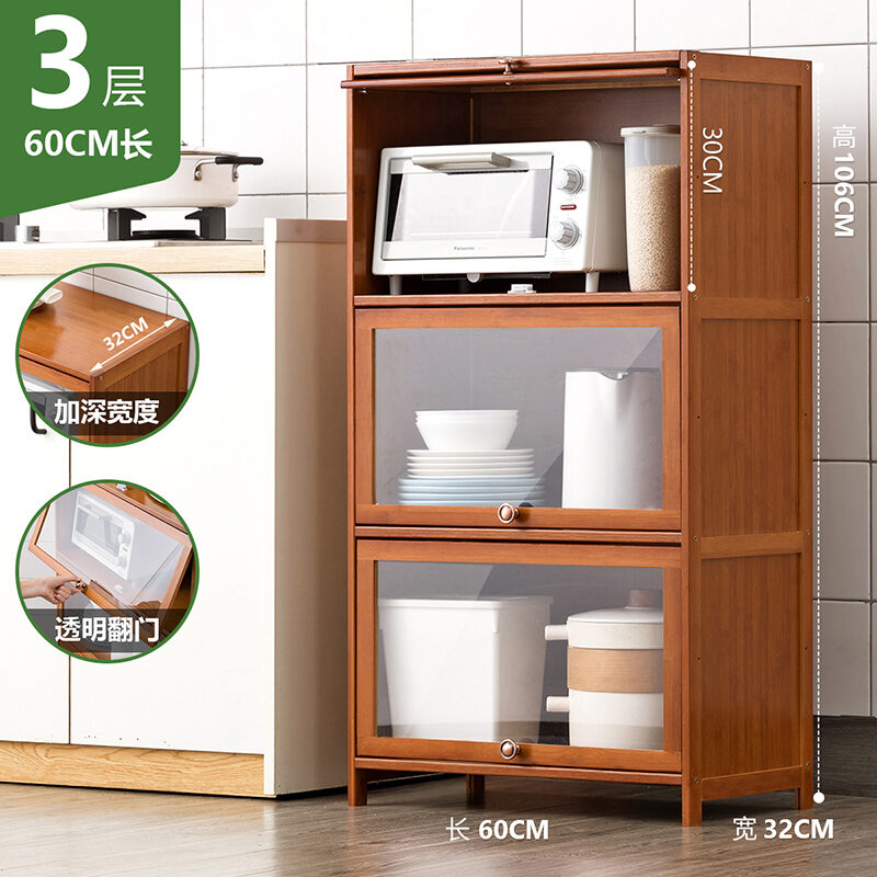 Kitchen Supplies Storage Cabinet Household Complete Floor Multi-Layer Multi-Functional Storage Rack with Door Locker Bookshelf Wood