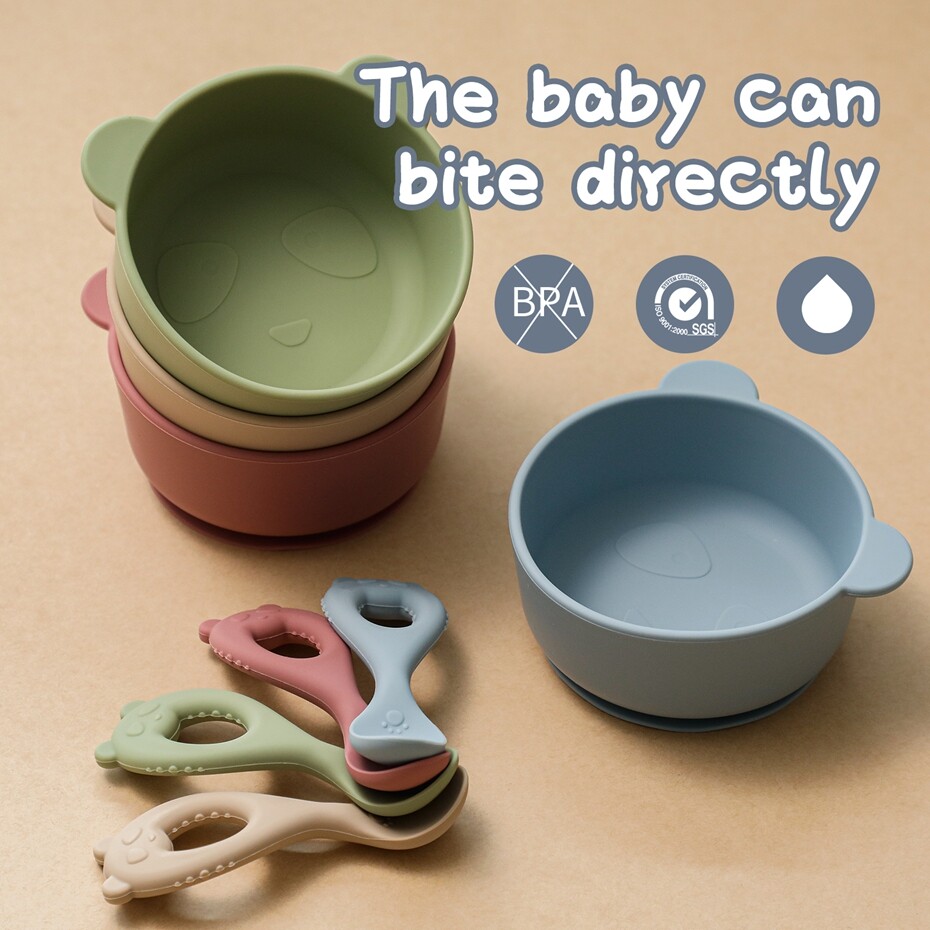 Mamimami Home Baby Bowl Set BPA Free Silicone Feeding Suctiom Bowl with Panda Spoon