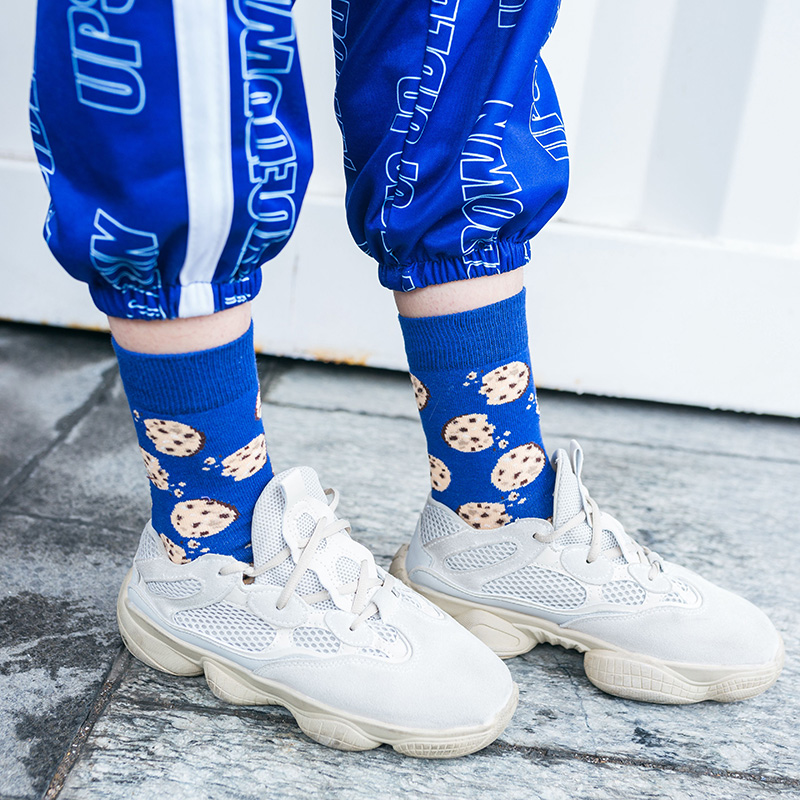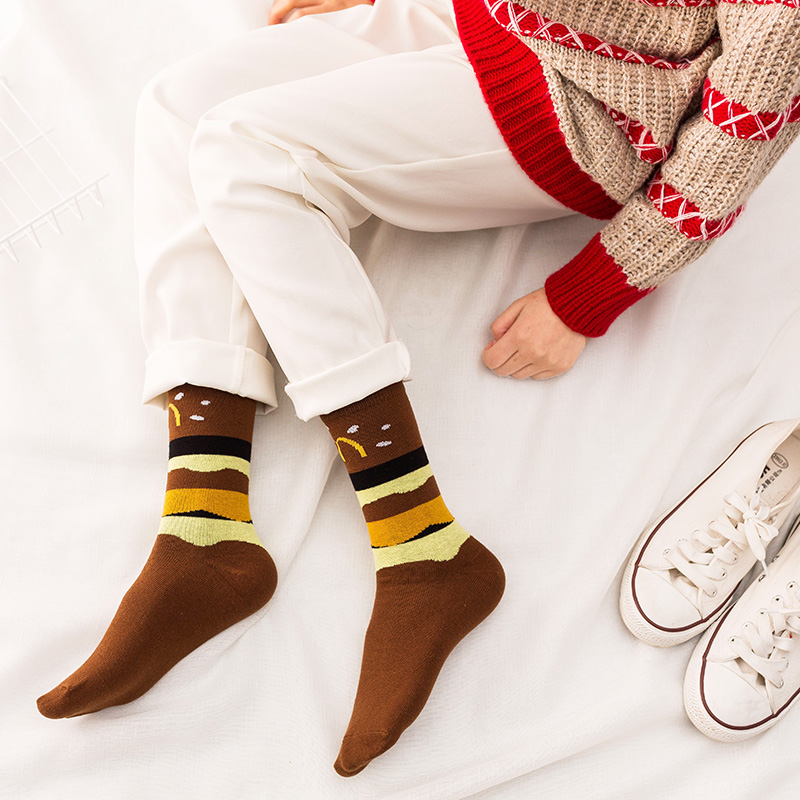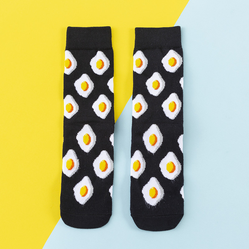 Funny Cartoon Fruits Food Women Crew Socks New Trend Cute Egg Cookie Donut Happy Colorful Novelty Skateboard Female Cotton Long Socks