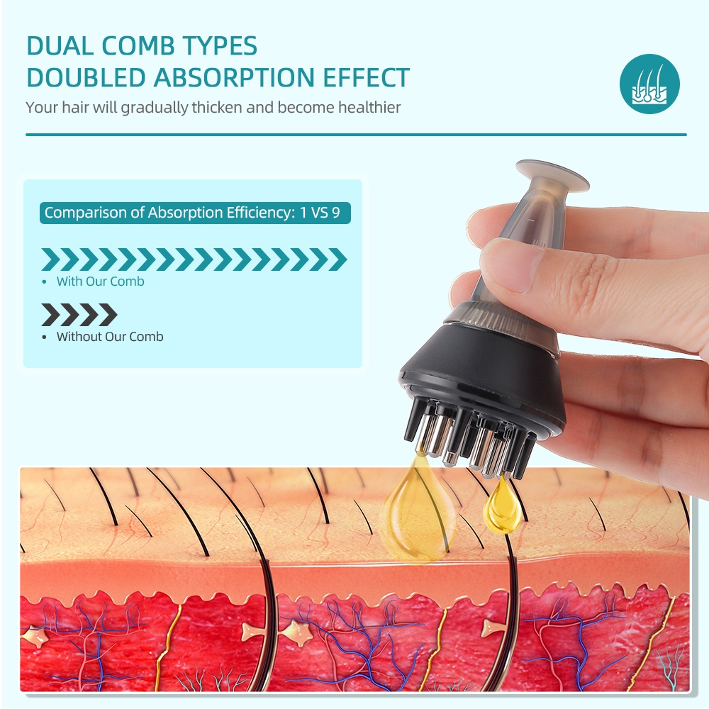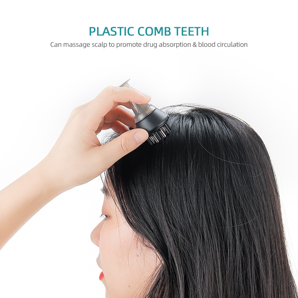 2. Additional Massage Function. 7 auxiliary plastic teeth are used to massage the scalp, promote blood circulation underneath, and thus enhance the absorptivity of the medicine.