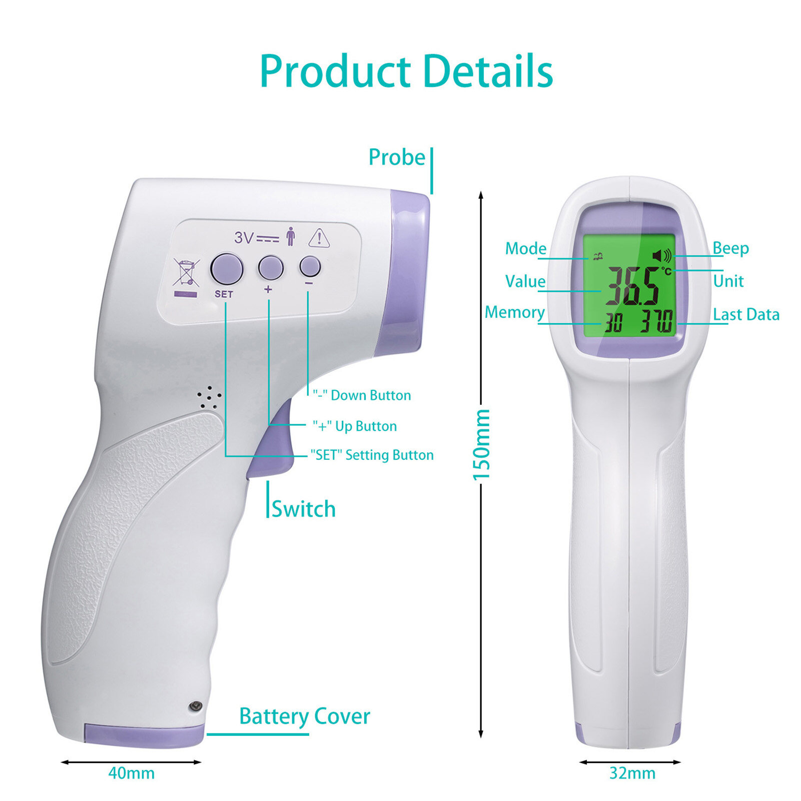 Features: Human Body Temperature Measurement: This Infrared forehead thermometer is suitable for all ages, infants, adults and the elderly, which provides the easiest and most practical way to take a temperature.