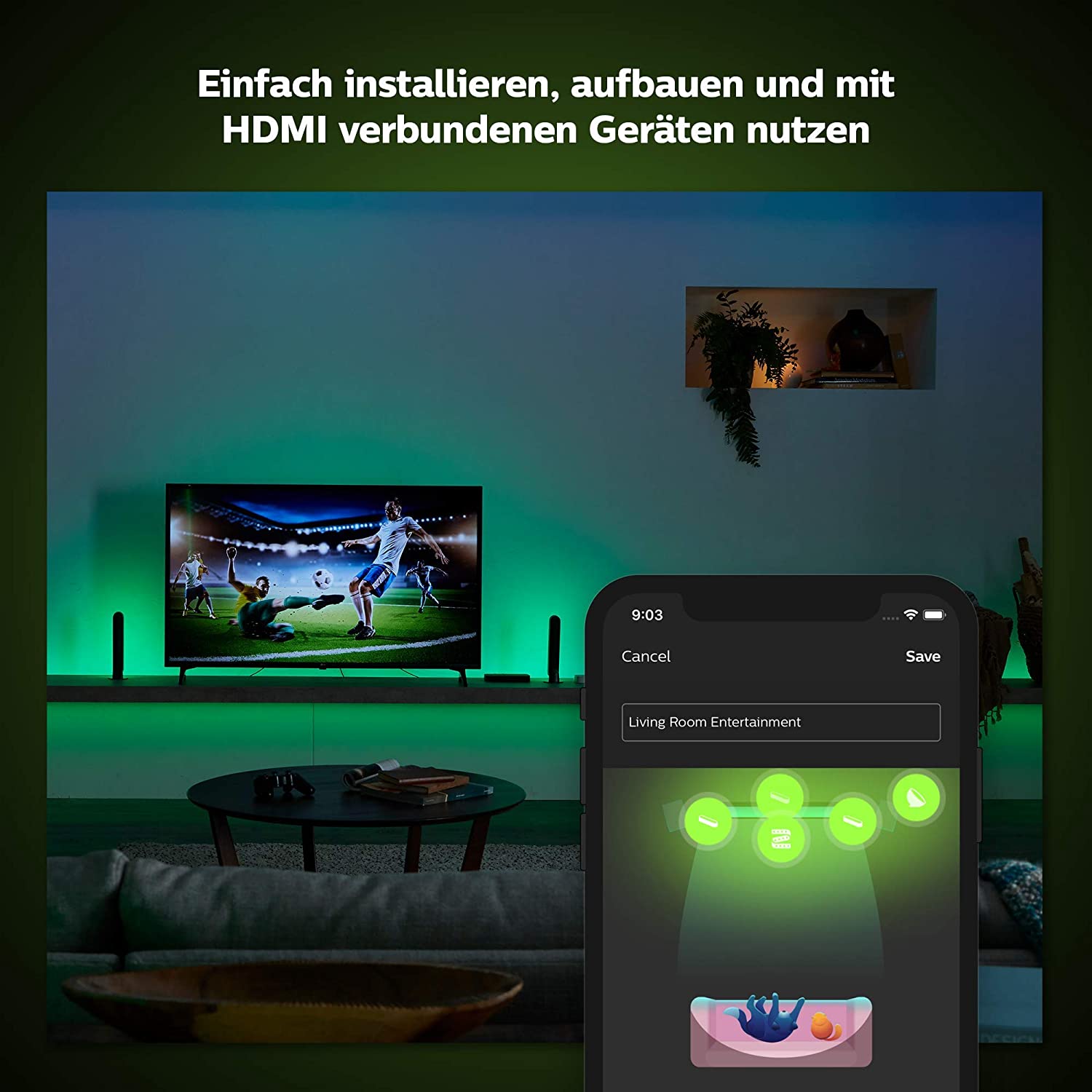 About this itemSurround lighting - discover the next level of immersion with philips hue surround lighting. sync on-screen content through the philips hue hdmi sync box and have your smart lights seamlessly mirror whatever you are watching, playing or listening toWhat's required? - philips hue bridge and colour smart lights (sold separately) are required for surround lighting. simply plug in your new sync box, download the hue sync app and follow the on-screen instructions to get startedSync with movies and tv series - enjoy cinema-like experiences and expand your on-screen content through your smart lights and into your room. see action movies, sports, magical fairy tales and more come to life with bright colours through smart lightingLight up your gaming - highlight your in-game actions with your smart lights. from slow-moving effects that match in-game environments, to fast flashes during action-packed gameplay, philips hue pulls you deeper into the gamePersonalise your experience - tailor your entertainment experience through the free Hue sync app and customise the brightness, light intensity or synchronisation modes with video, audio and game