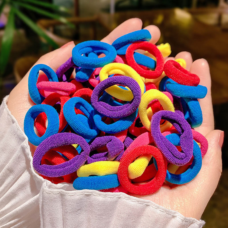 100Pcs/Pack Baby Hair Bands Cute Colorful Elastic Rubber Girl Kids Hair Rope Lovely Ponytail Holder Hair Ties Hair Accessories