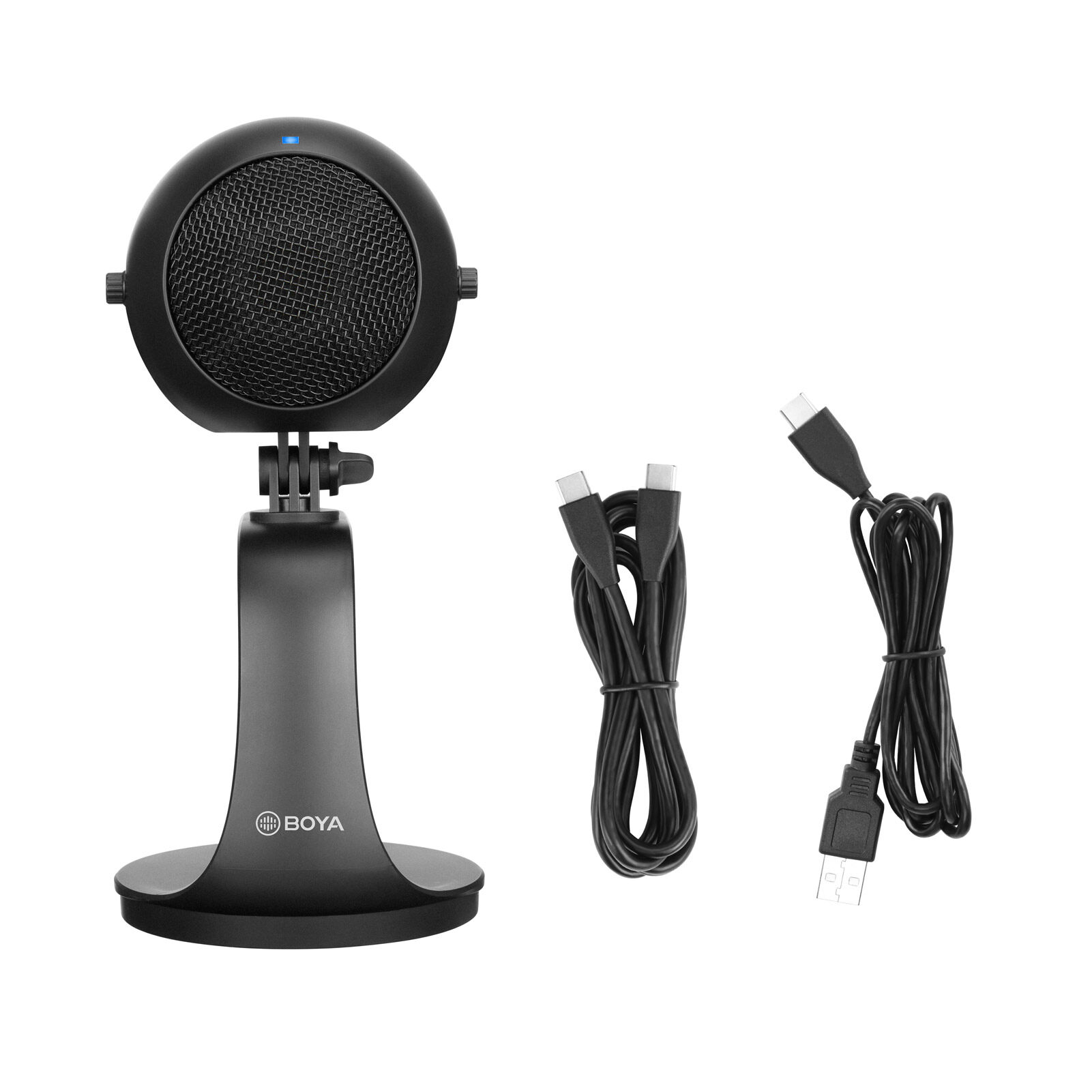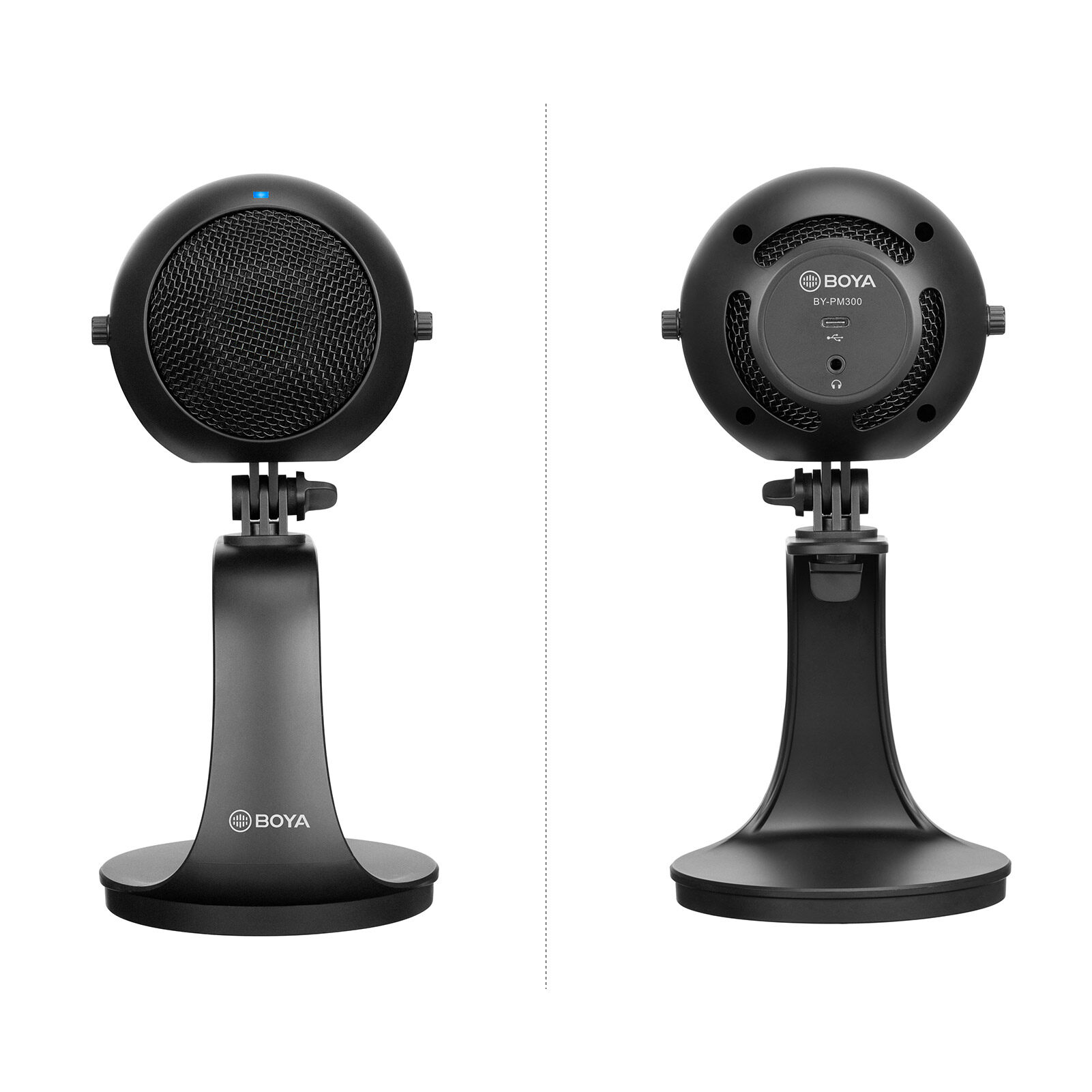 BOYA PM300 Cardioid Microphone Desktop Microphone Real Time Monitoring Mute Function with Type-C to USB-A/Type-C Cable for Smartphone Computer Live Stream Video Shooting Professional Recording Intervi