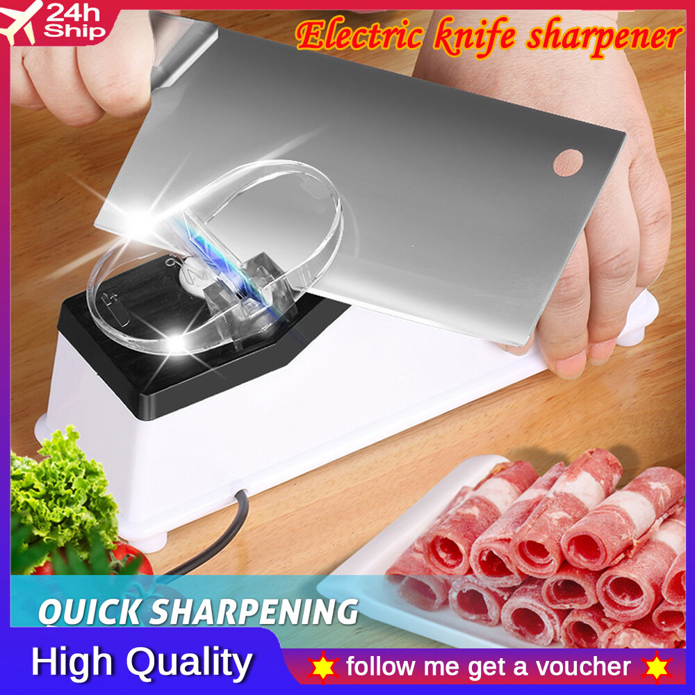 Are you tired and frustrated with dull knives? Our electric knife sharpener is what you need to help you slove your problems. With high-quality white corundum wheel, it's designed to sharpen different kinds of knives and meet different needs. A perfect helper for your kitchen!