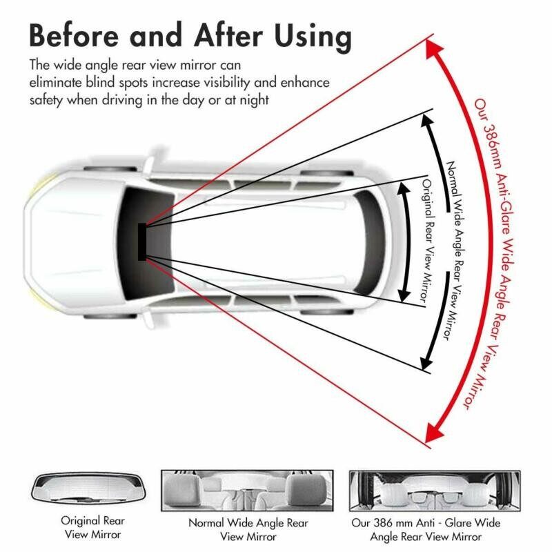 1. Three-fold rearview mirror: a wider field of vision, to help you expand your field of vision 90%~130%, you can see vehicles on both sides of the car,