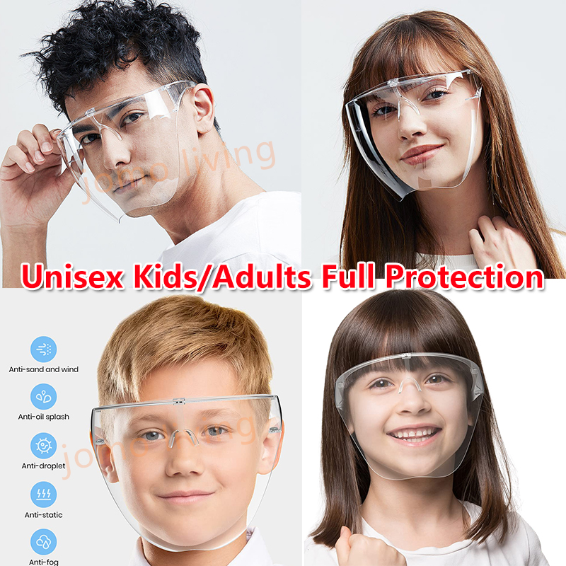 【SG Ready Stocks】Kids Adults Solid Full Face Protection Shield Mask Acrylic Transparent Anti Fog Face Shield