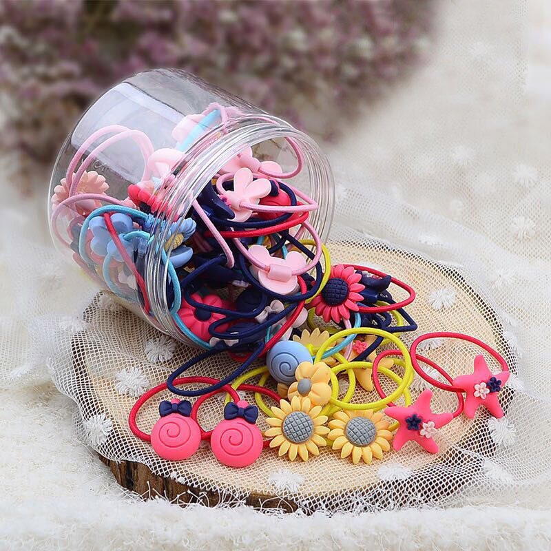 40Pcs/Set Cute Elastic Baby Hair Rope Sweet Bowknot Floral Infant Girl Rubber Band Cartoon Star Newborn Toddler Ponytail Holder