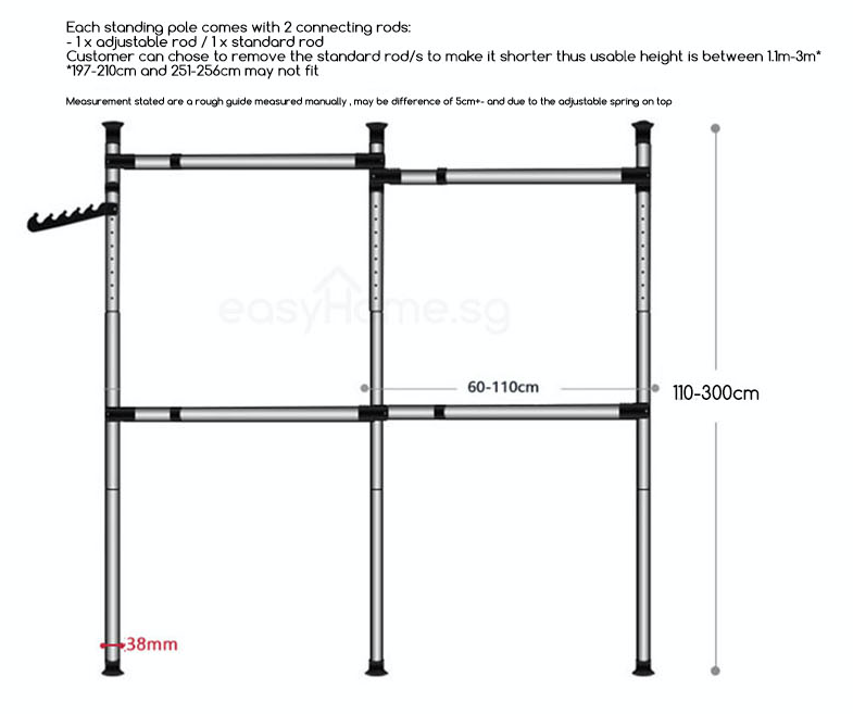 3804 Korean Standing Pole Clothes Rack- Adjustable Hanger Bar/ Drying Shelf