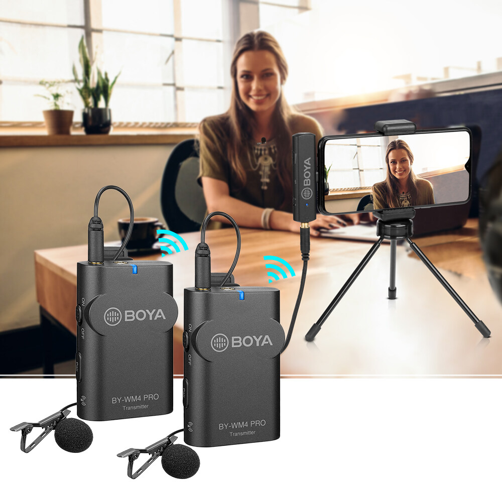 BOYA BY-WM4 PRO-K6 2.4G Wireless Microphone System (Transmitter * 2 + Receiver * 1) 60M Effective Range Compatible with Android Smartphones with Type-C Interface