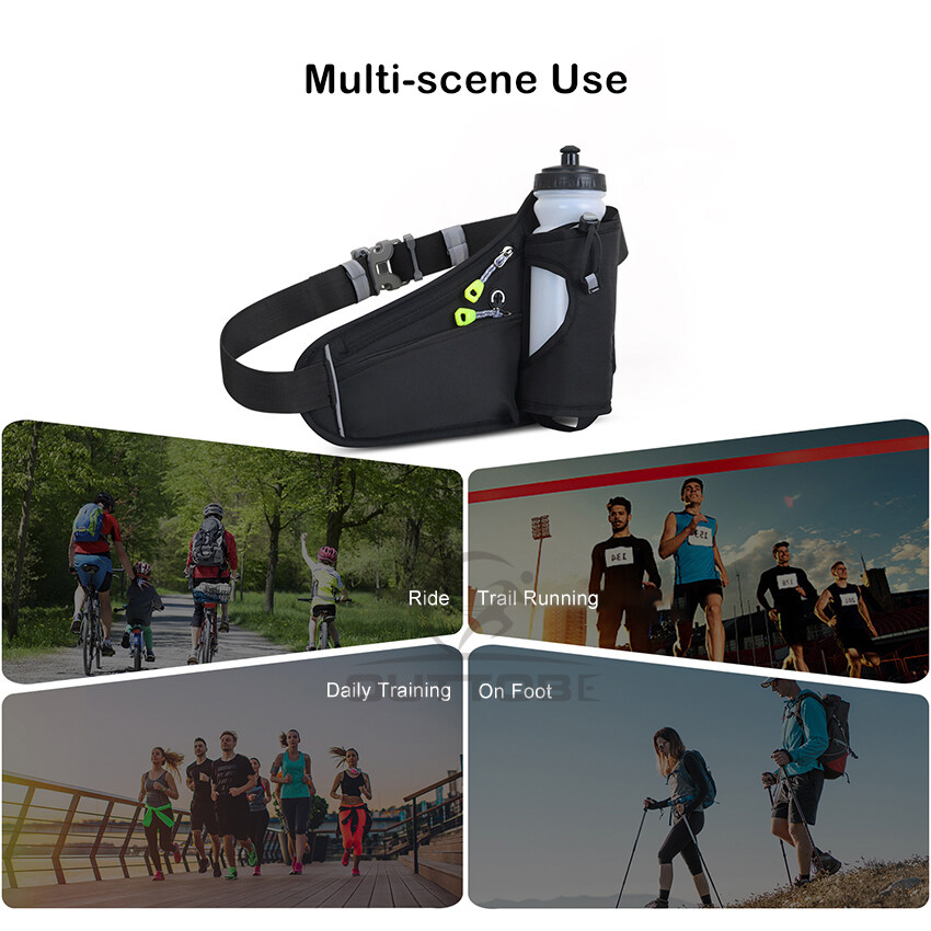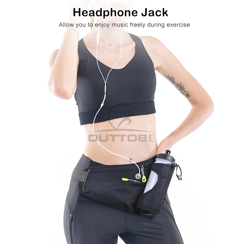 Outtobe Waist Bag Sports Hydration Belt Bag Running Belt Bum Bag with Water Bottle Holder Hidden Pouch Portable Gym Bag for Running Cycling Hiking Walking(Only bag, No kettle)