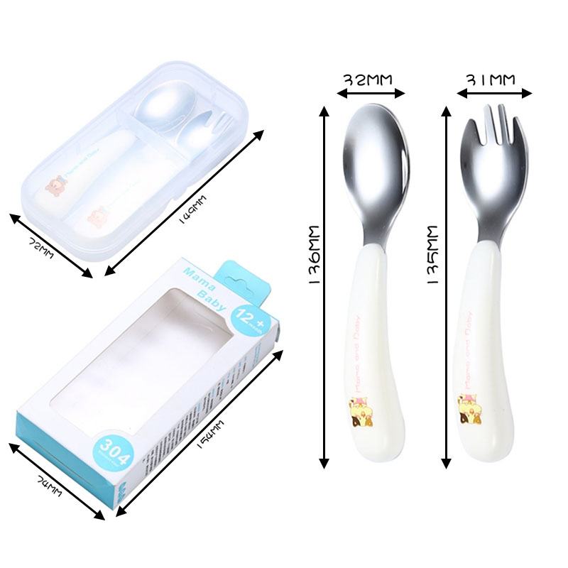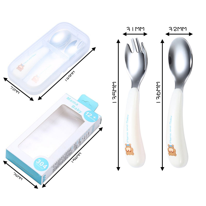 Mododo 2pcs/Set Spoon Forks Portable Children 1Box Kids Cutlery 304 Stainless Steel Tableware Baby Feeding Utensils Cartoon Pattern