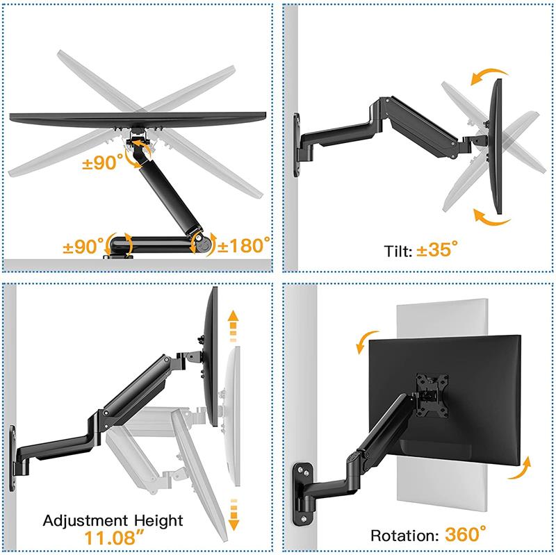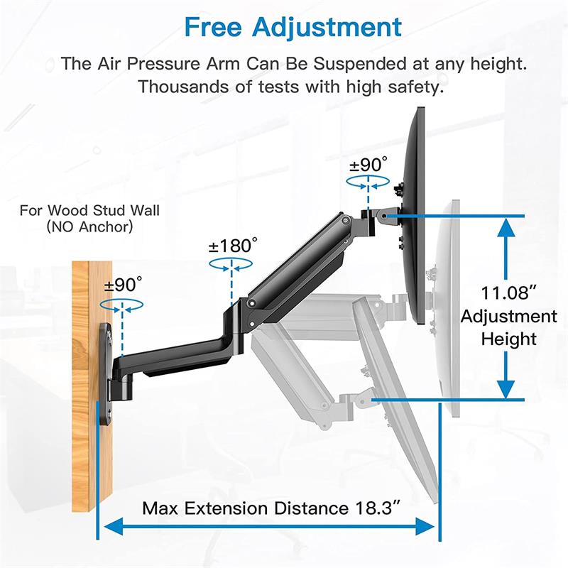 ▪️Built-in pneumatic spring system, adjust damping to accommodate the monitor weight, bearing up to 7.8kg.