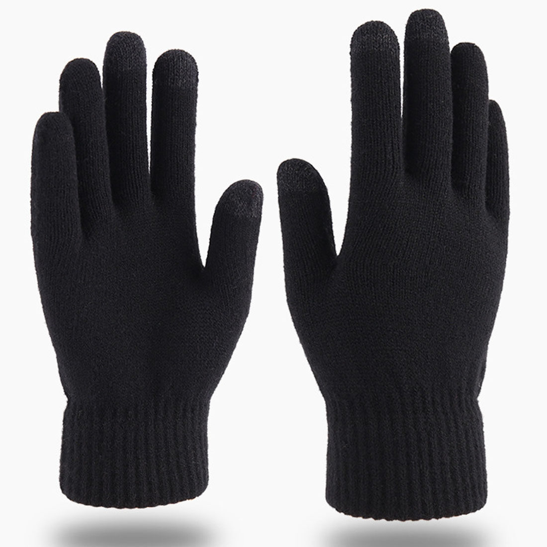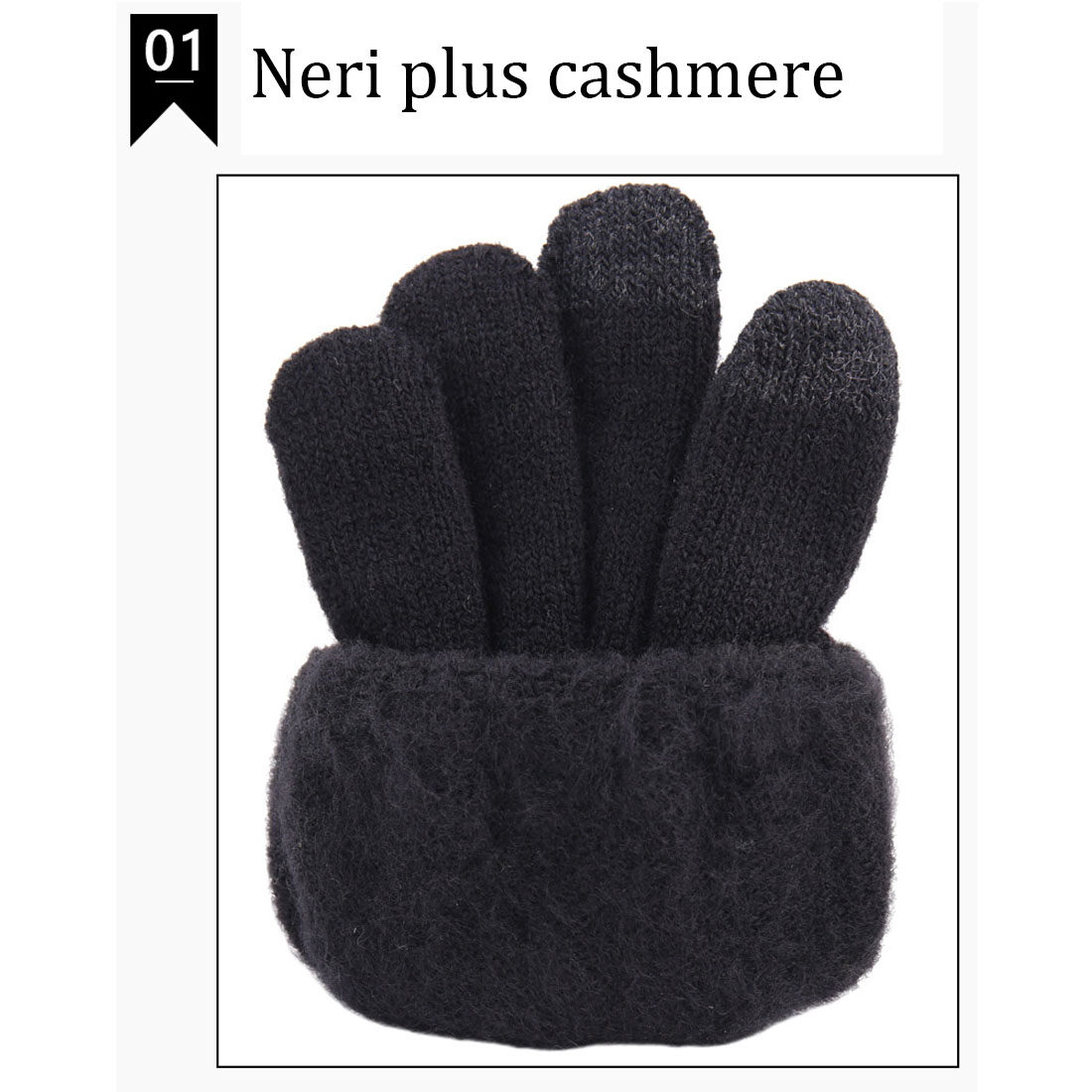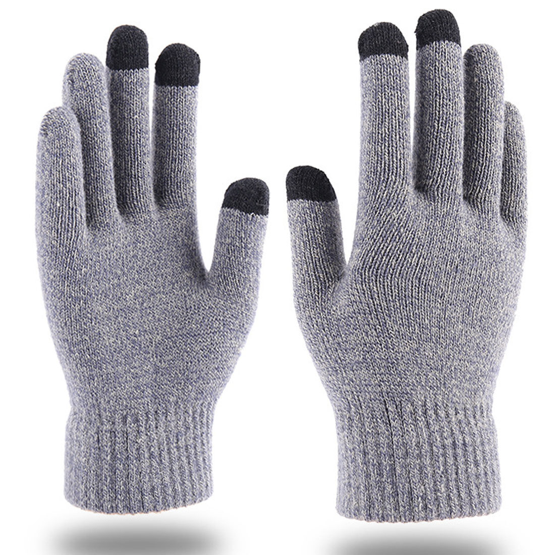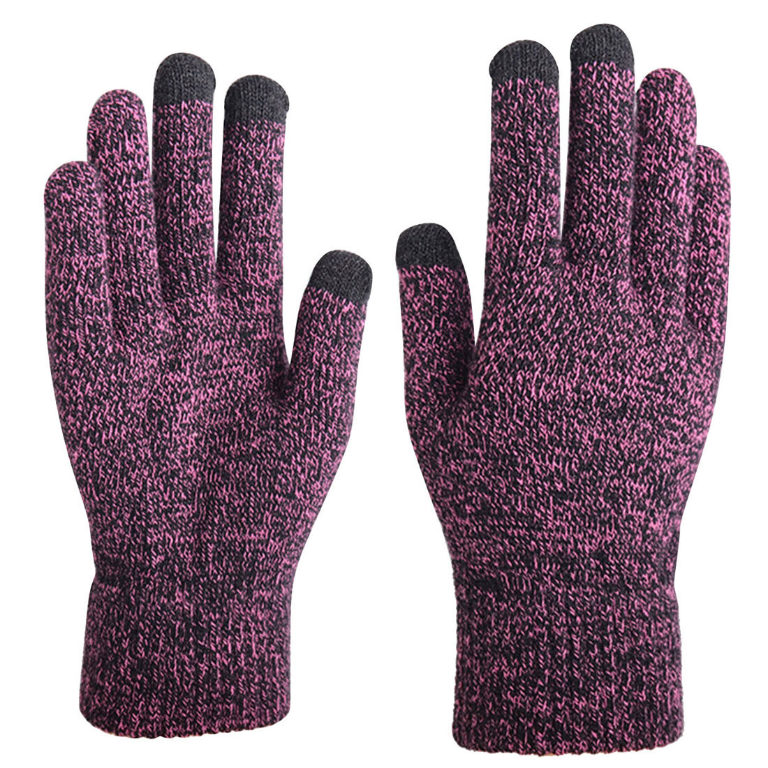 1 Pair Winter Touch Screen Gloves Elastic Cuff Fleece Lined Warm Knit Gloves Men and Women Add Velvet Padded Gloves Outdoor Driving Cold-proof Full Finger Glove