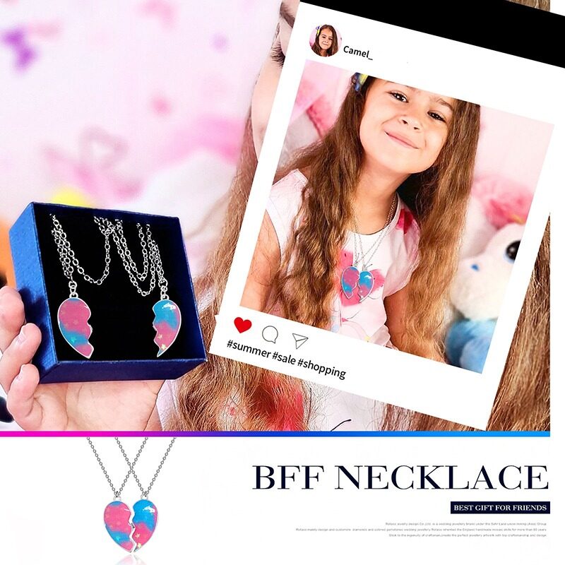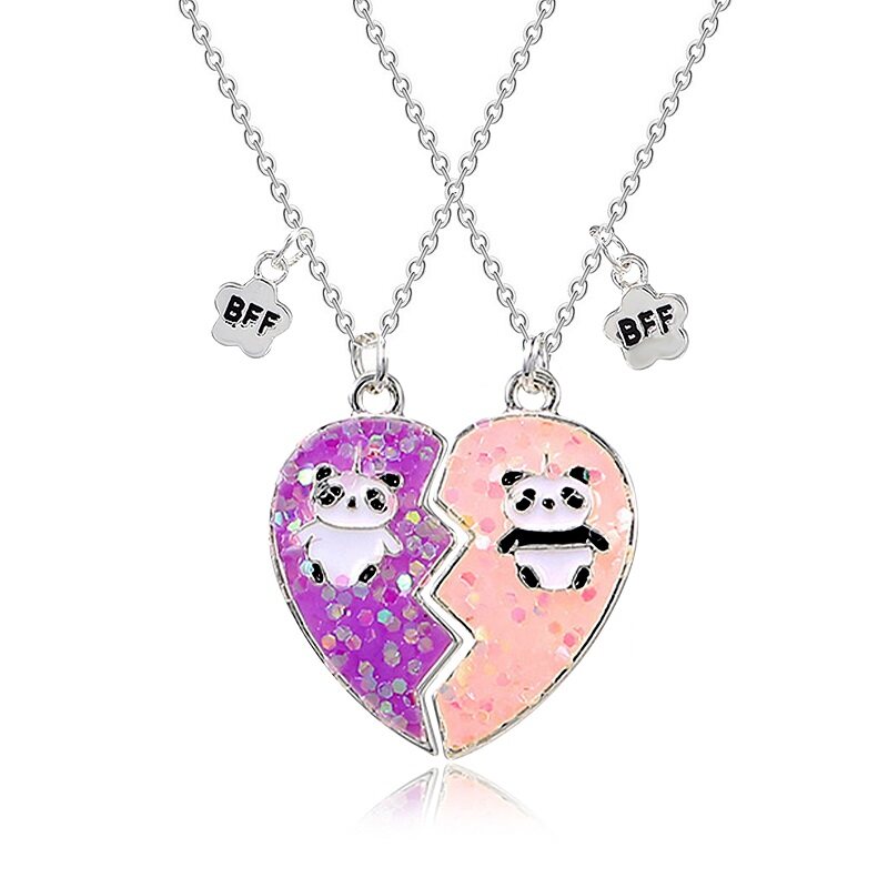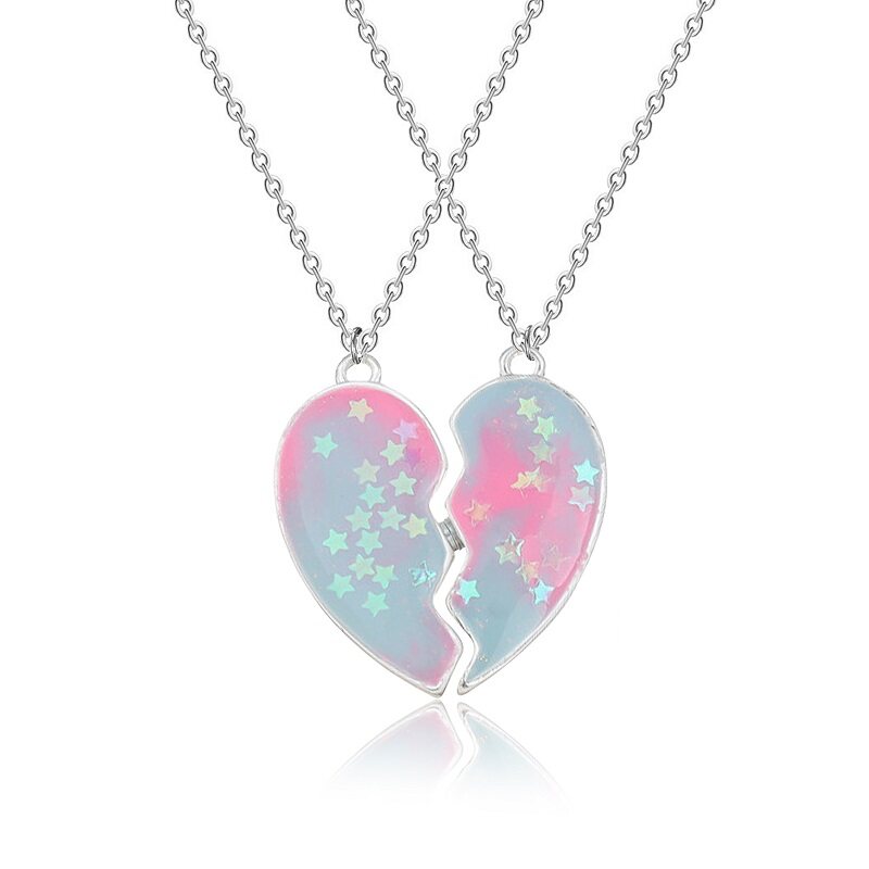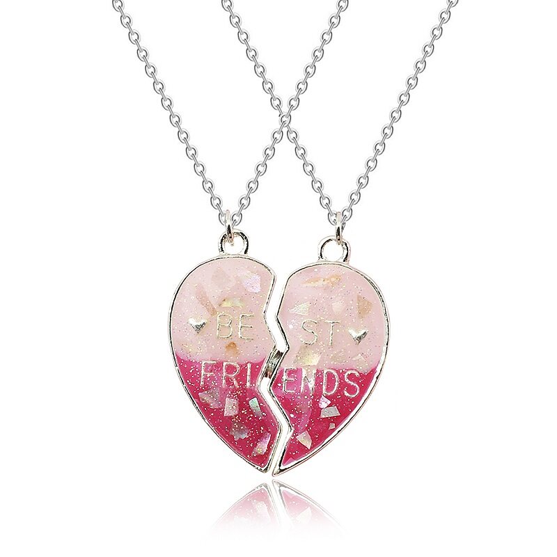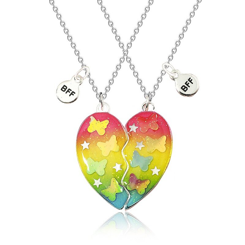 MJartoria Rantai BFF Best Friends Couple Pendant Necklace 2 Pcs Rainbow Broken Heart Butterfly Good Friends Friendship Jewelry Valentine's Day Gift