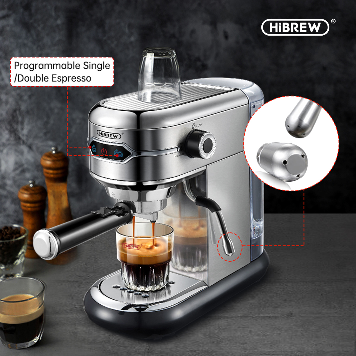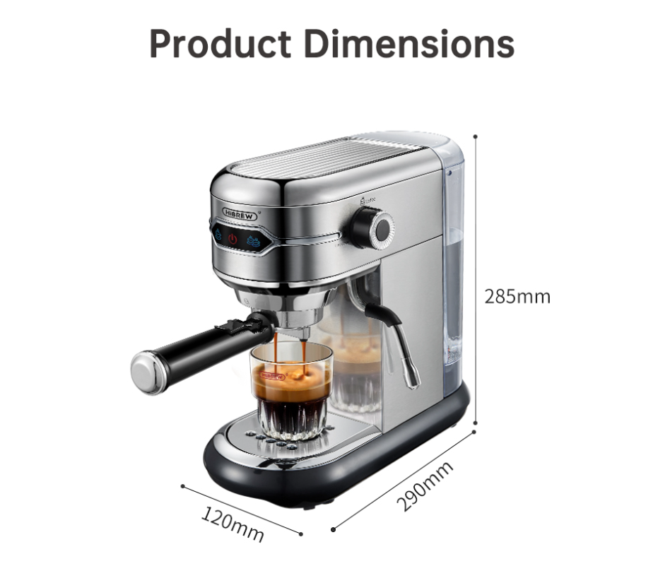 HiBREW Espresso Machine |19 Bar Expresso Coffee Machine with Milk Frother Wand for Cappuccino&Latte Coffee Maker |Compact Design (1450W) H11