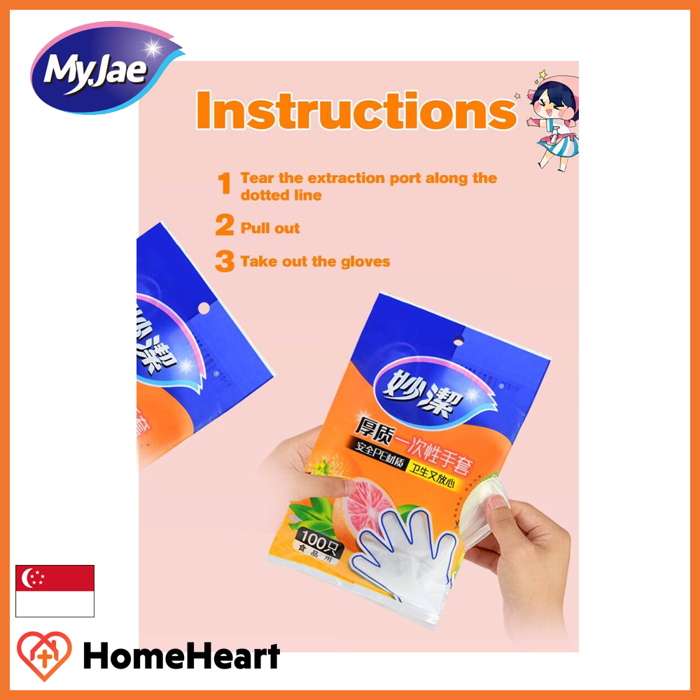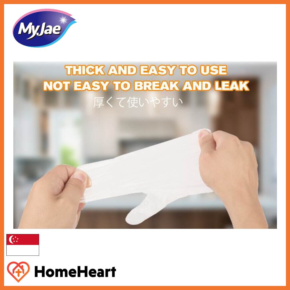 [2 Pack] (200pcs) MyJae PE Disposable Gloves - Non Toxic, Thick, Leakproof With Ribbed Design For Added Friction (200pcs) [2 Pack]