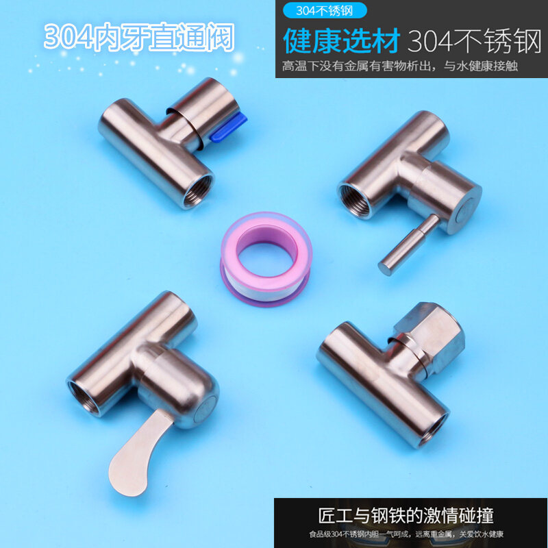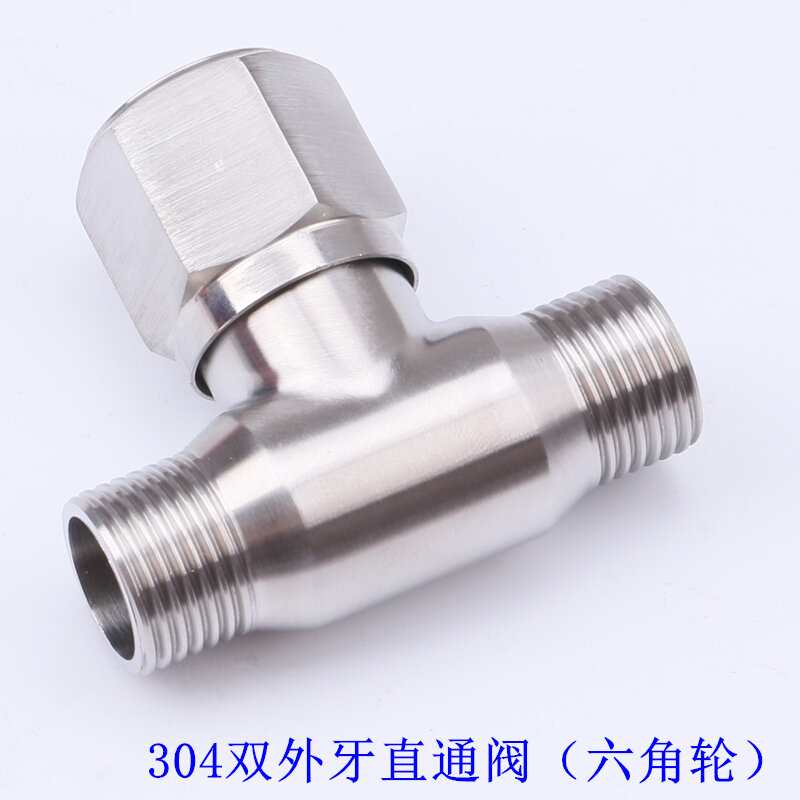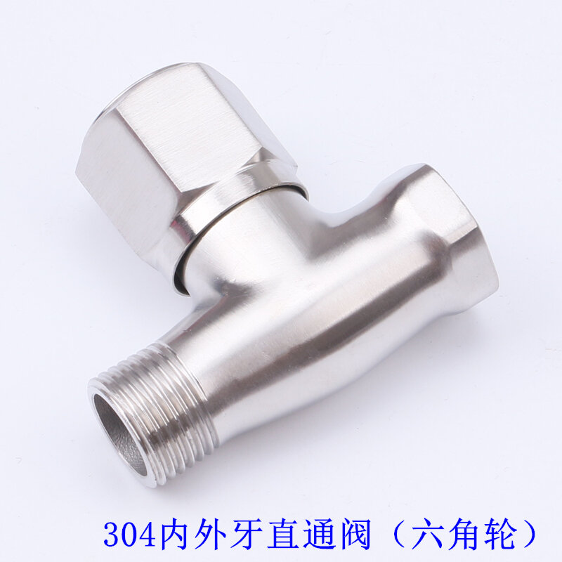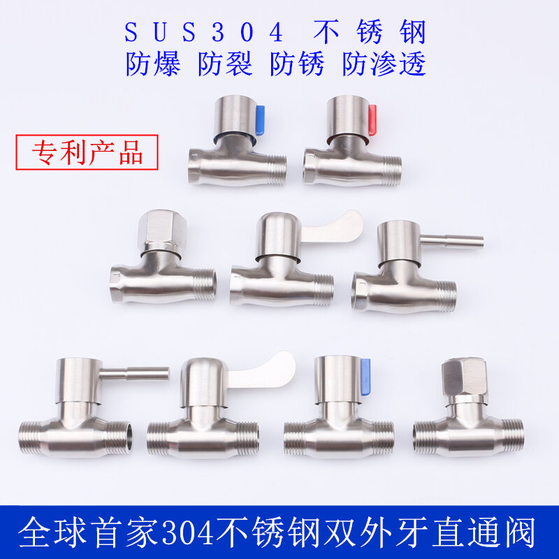 304 Stainless Steel Direct Valve 4 Points 6 Points Open-Mounted Pipe Double Internal and External Wire Thread Straight Angle Valve DN15 All Steel Fast Switch