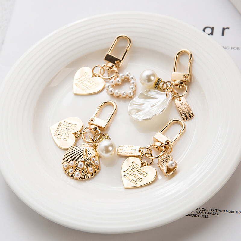 lof 1PC Key Ring Shell Keychain Heart Keychain Keychain Pearl Pendant Bag Ornament Key Accessory Fashion