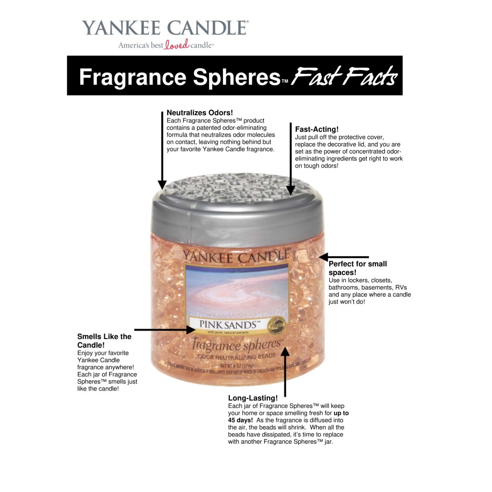 ✔ Fragrance Spheres™ are the perfect solution for small spaces to neutralise odours and refresh with your favourite Yankee Candle fragrance.