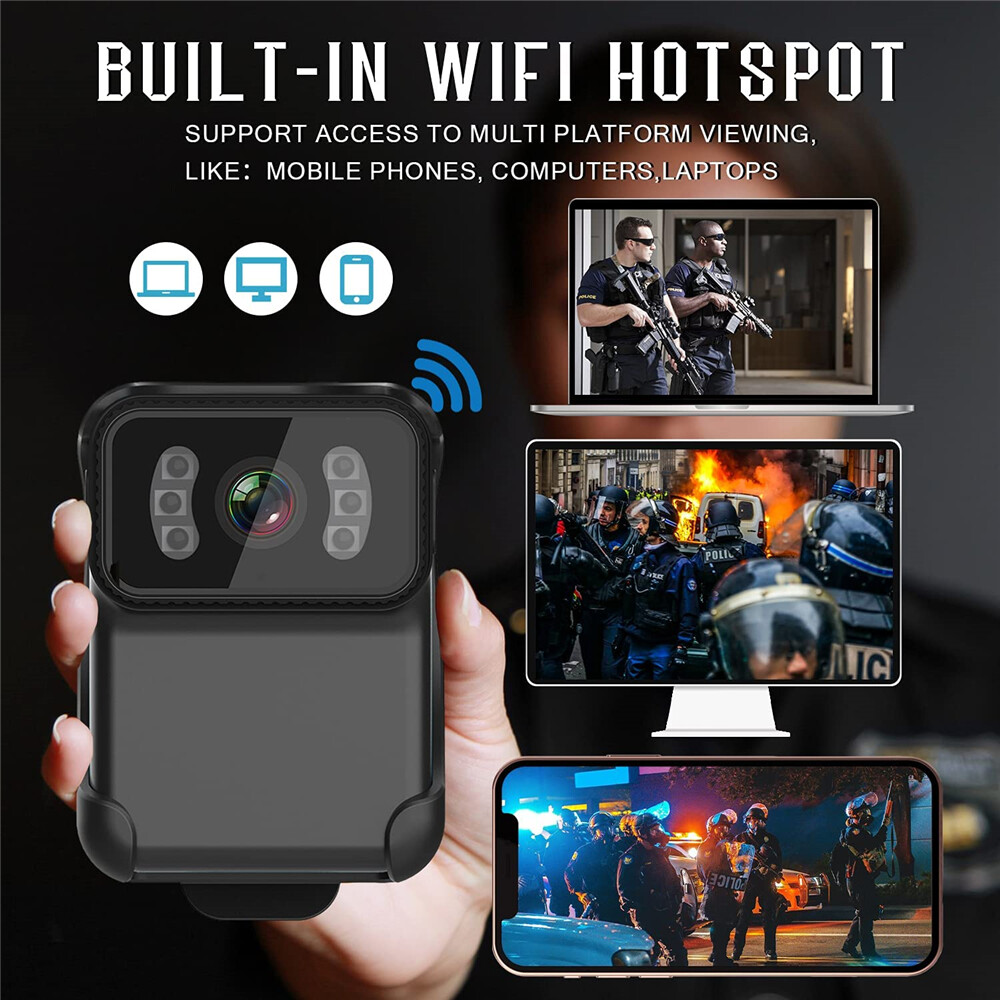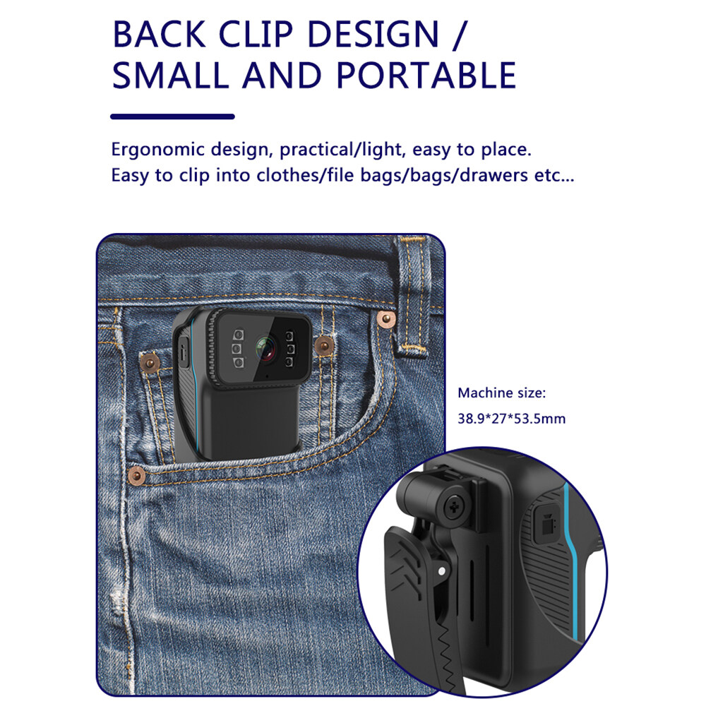 Mini Wearable Body Camera HD 1080P Police Law Enforcement Recorder with Night Vision Function Build-in Mic 900mAh 3Hours Recording Time Support 256GB Memory Card Insert