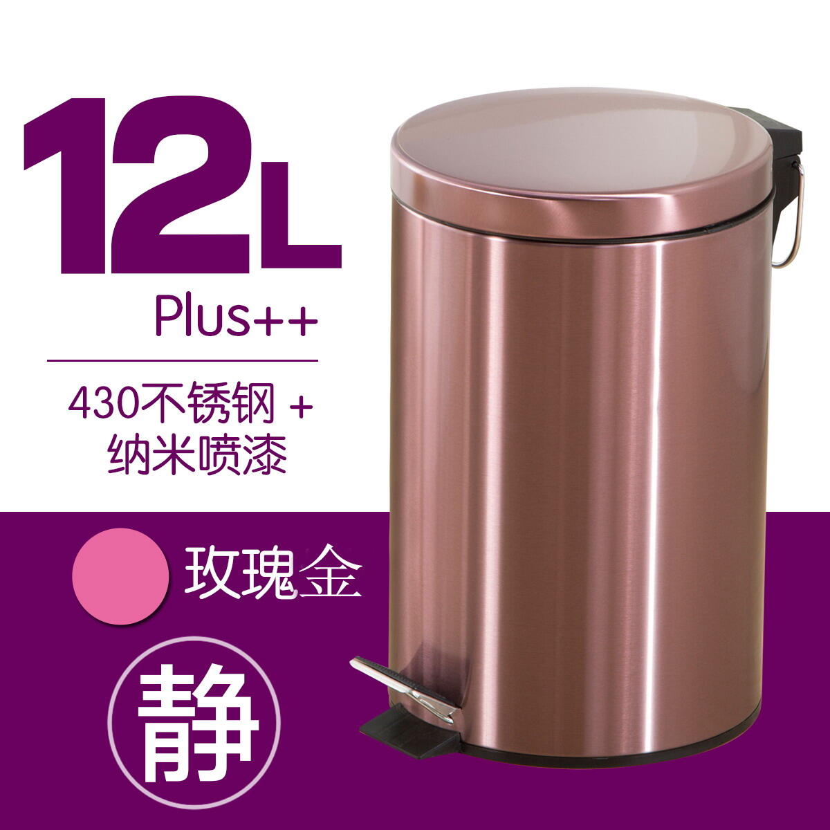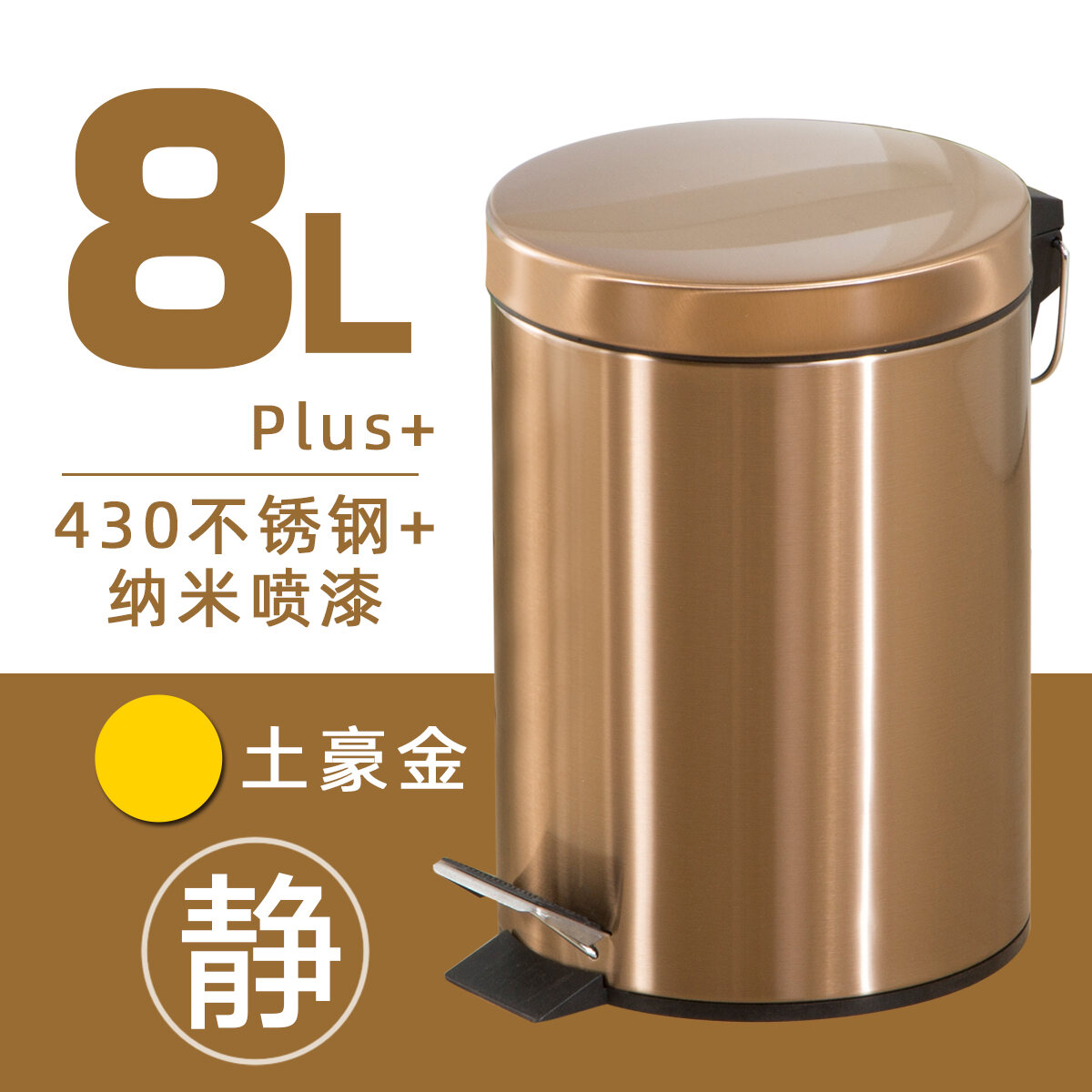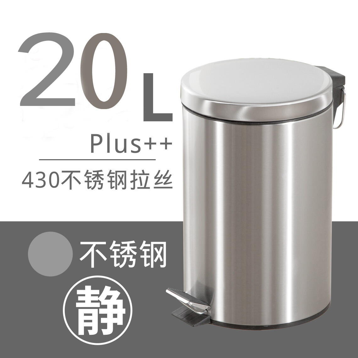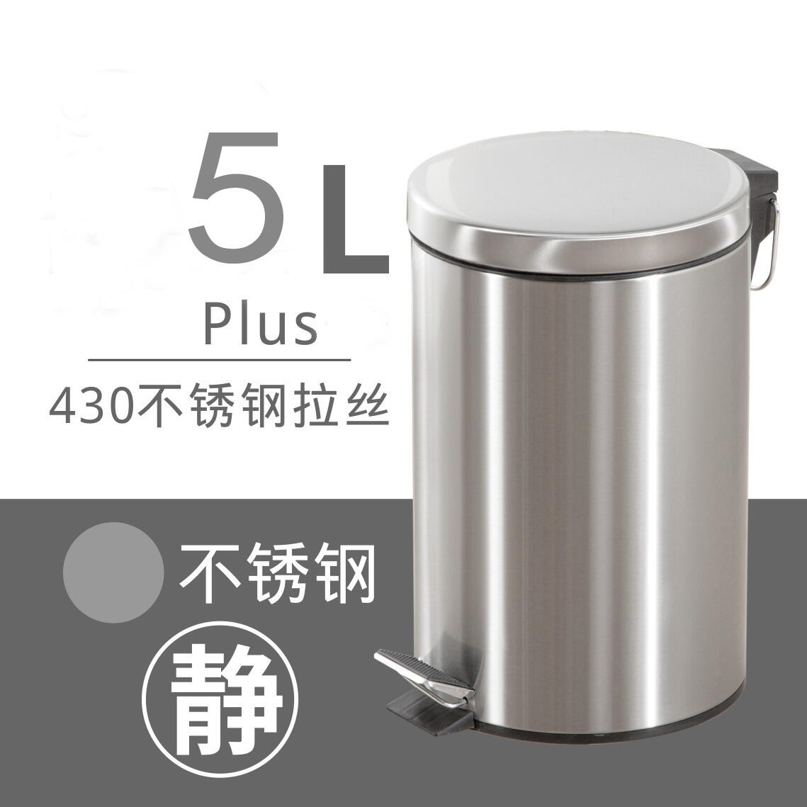 Trash Can Household Shanghai Wet and Dry Japanese Style Living Room Kitchen Stainless Steel Bathroom Pedal Trash Can Mute