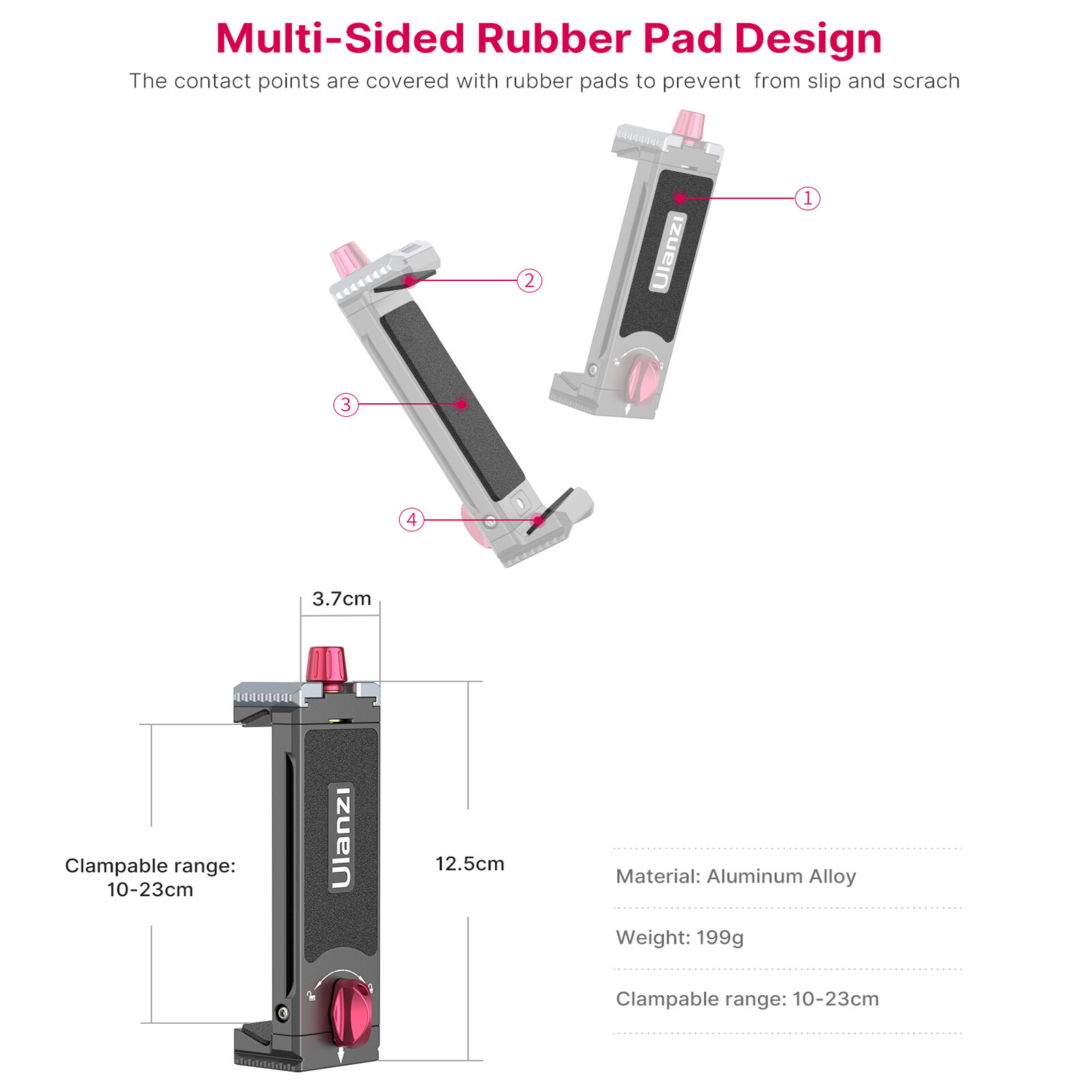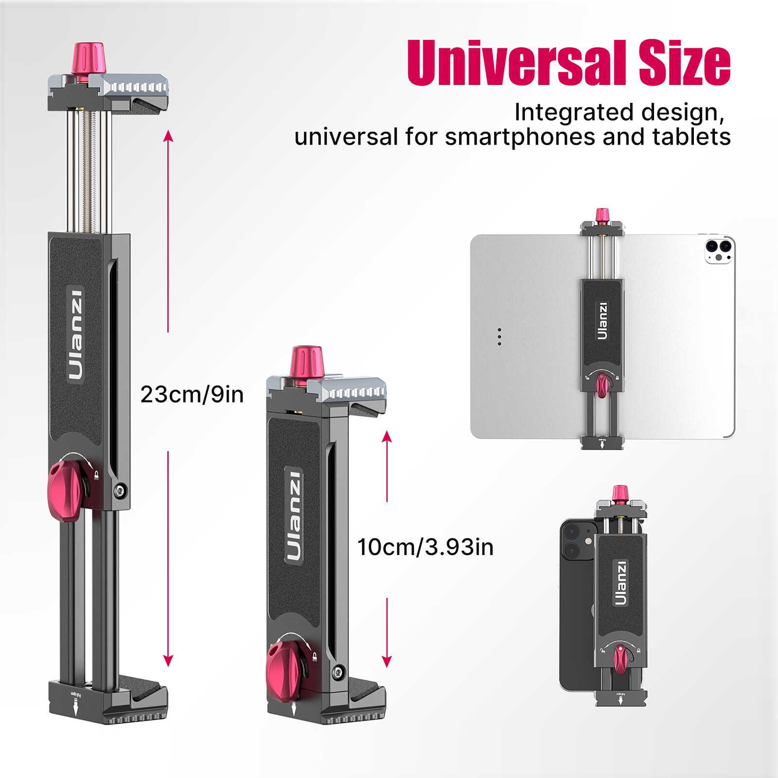 Ulanzi U-PAD III Universal Smartphone Tablet Tripod Mount Metal Phone Tablet Holder Clamp 10cm-23cm/ 3.93in-9in Adjuatable Width with Cold Shoe Mount Replacement for iPhone 13/12/11, iPad/ iPad Mini/