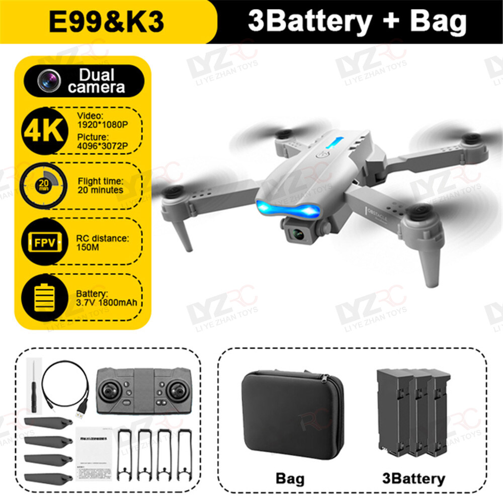 LYZRC New E99 K3 RC Mini Avoid Obstacles Drone 4K Dual Camera WIFI FPV Aerial Photography Helicopter Foldable Quadcopter Drone Toys Gift